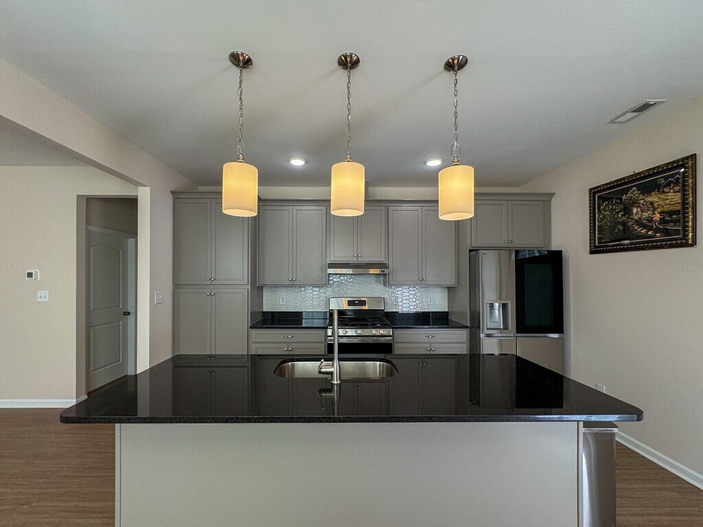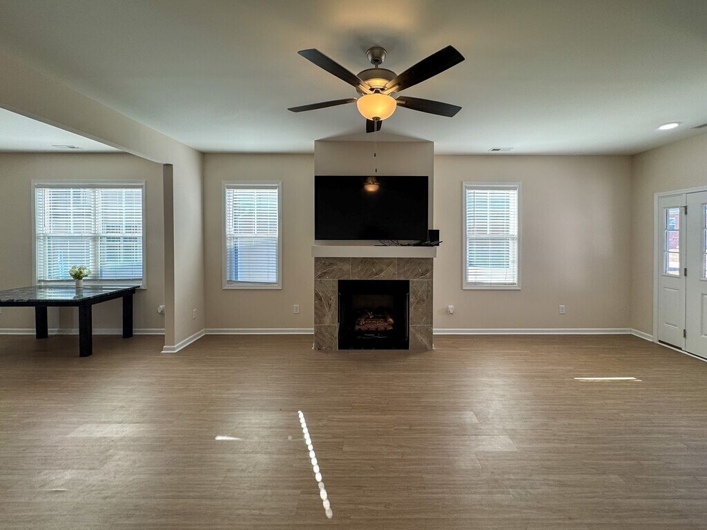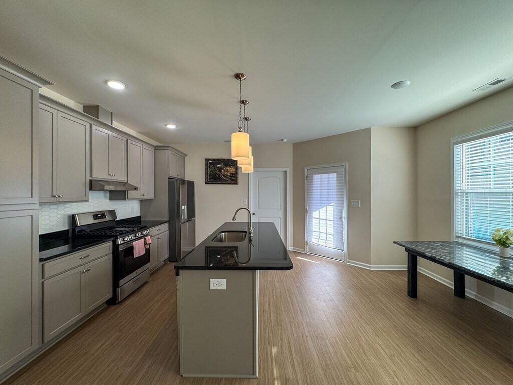 This stunning 3-bedroom, 2-bathroom home boasts an open floor plan that seamlessly connects the living room, adorned with a cozy fireplace, to the kitchen. The kitchen is a chef's dream, equipped with modern stainless steel appliances, a tile backsplash, and a functional island that offers additional seating. The primary bedroom is a private retreat, featuring an ensuite bathroom with a dual vanity, a large shower, and a spacious walk-in closet. The outdoor space features a back porch and patio perfect for entertaining or simply enjoying a beautiful day. This home is a perfect blend of style and comfort. No smoking. Pets are negotiable with a $250 nonrefundable fee for the first pet and $150 for any additional.
