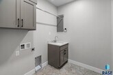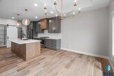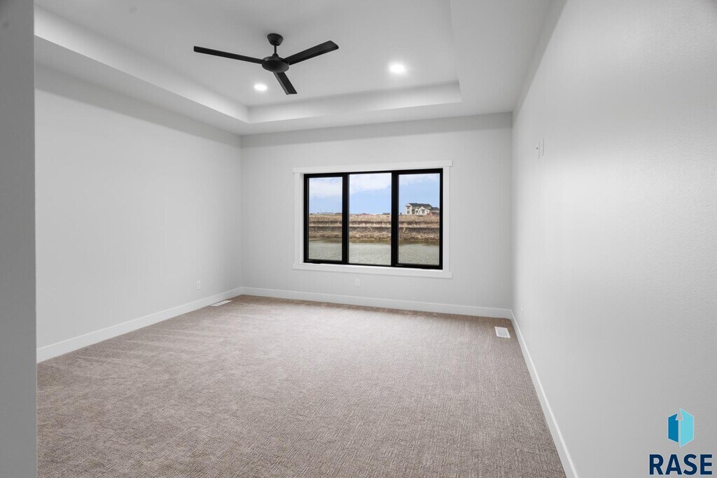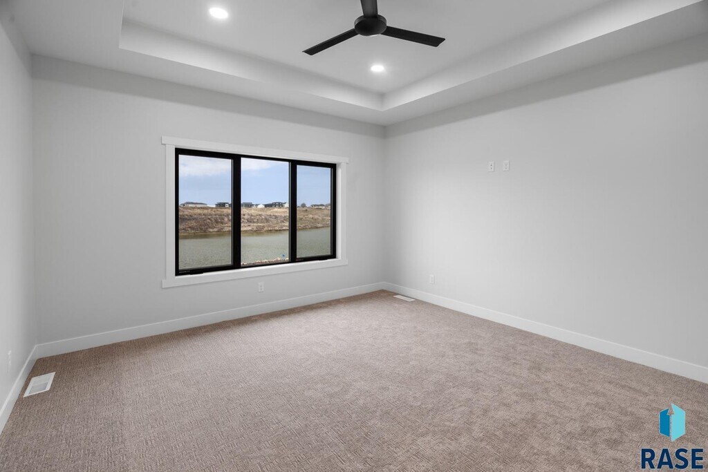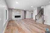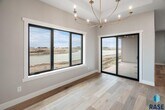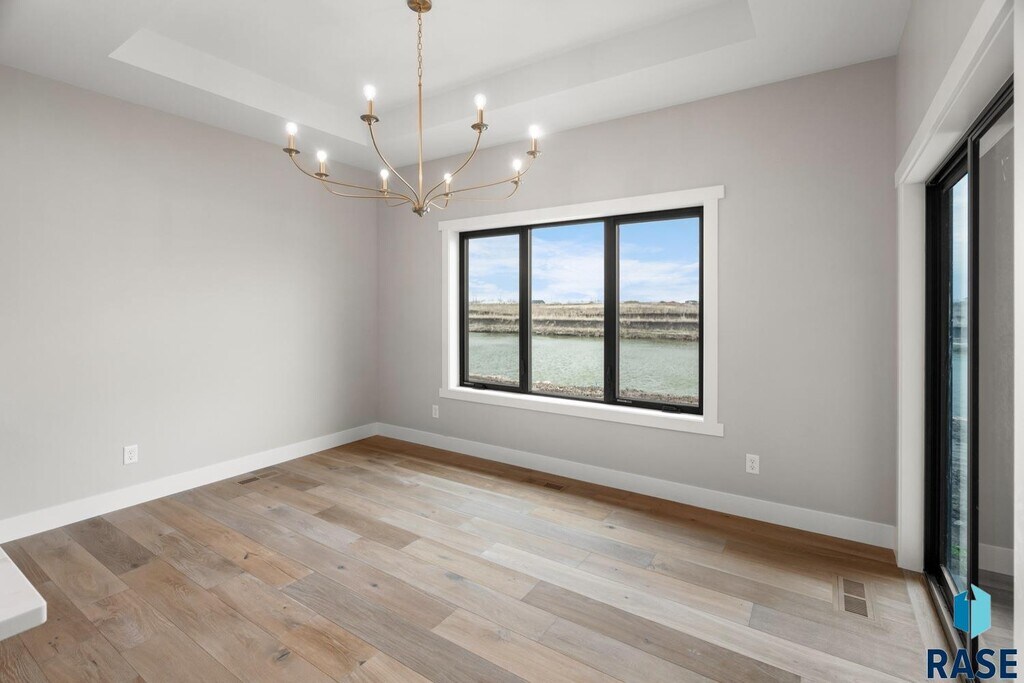 Luxury beachfront twin home with coved 25-ft private beach area on coveted Nine Mile Lake. Ultra spacious design featuring a main level primary suite, perfectly placed main floor office or additl bedroom, as well as 2 addtl bedrooms in upper level & giant loft area & 2nd laundry hookups. Functionality & elegance awaits in the kitchen equipped w/ walk-in pantry, custom cabinetry, stylish oven hood & quartz tops. Designer elements of exquisite fireplace, luxe tile shower in the primary bathroom, integrated home audio, finished & heated garage w/epoxy flooring, & comprehensive landscaping packages. Convenient 8 x 16 covered patio space. Prioritized privacy w/concrete walls separating each twin home as well as a storm shelter for peace of mind. Turnkey living w/HOA covering garbage, lawn, snow removal, road maint. & access to community beach for only $185/mnth. Nine Mile Lake development will feature a community beach & city park.