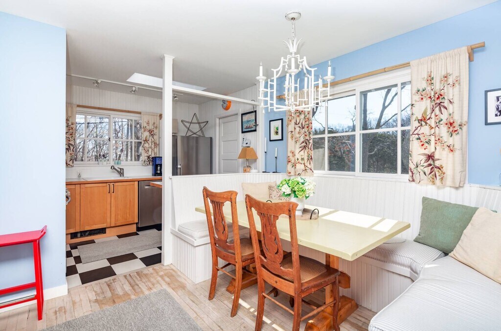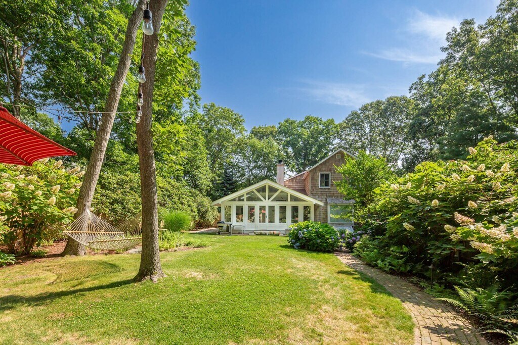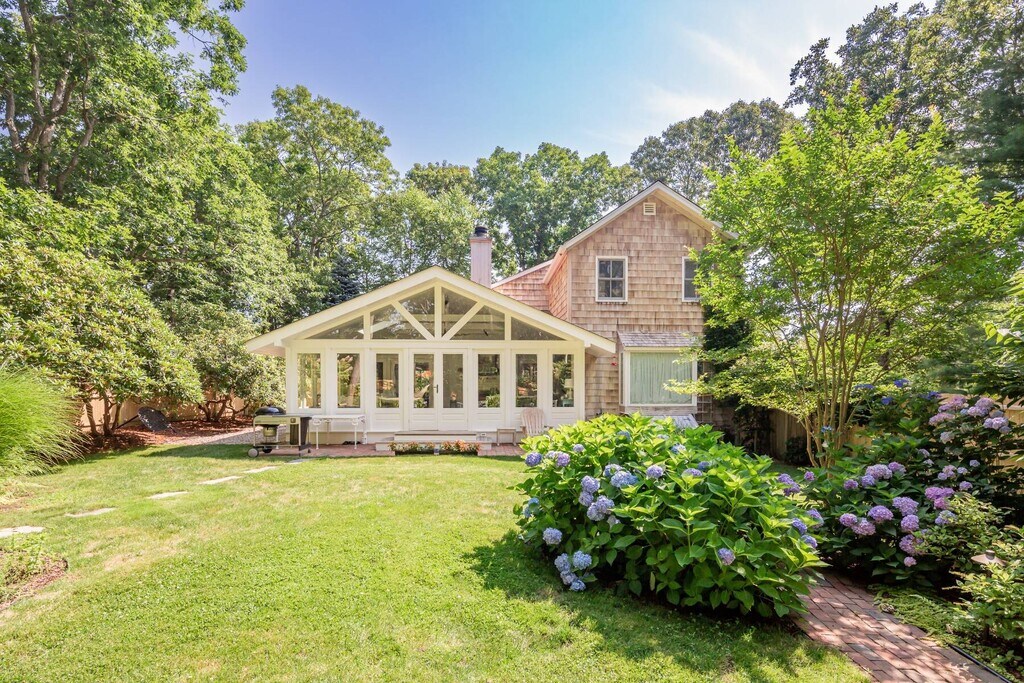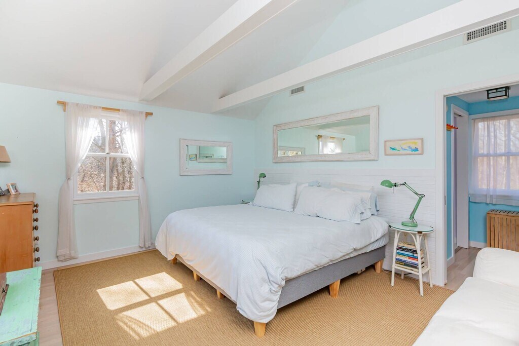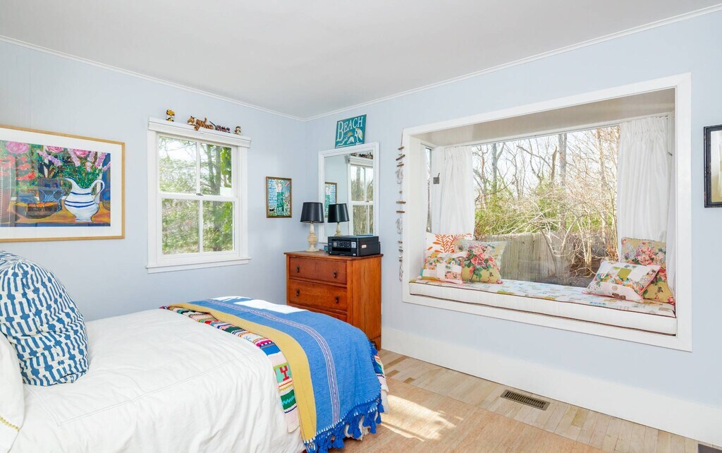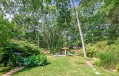 Across from preserved land and situated at the gateway to scenic and sought after Gerard Drive, this charming East Hampton beach cottage beckons. The appeal of this home is felt upon entry. The summer room faces the landscaped and enclosed yard with pathways and spacious lawn leading to a seating area surrounded by a fabulous fire pit. The perfect setting for slowing down and breathing in the salt air from nearby Gardiner's Bay. The 1st floor hosts an open kitchen with charming seating area, a pantry and updated retro feel. The Living Room and Den have doors that close the rooms affording privacy if needed. There is a 1st floor guest room with Queen size bed and a full bath The primary en suite bedroom with King size bed is on the 2nd floor with beautiful views toward Accabonac Harbor and offers privacy. Part of the Clearwater Property Owners Association, this rental comes with privileges that include access to a residents only bay beach and launch area for a kayak or Stand Up Paddle Board. [[Rental Registration # Pending]] Rental Terms: August - Labor Day: $22,000