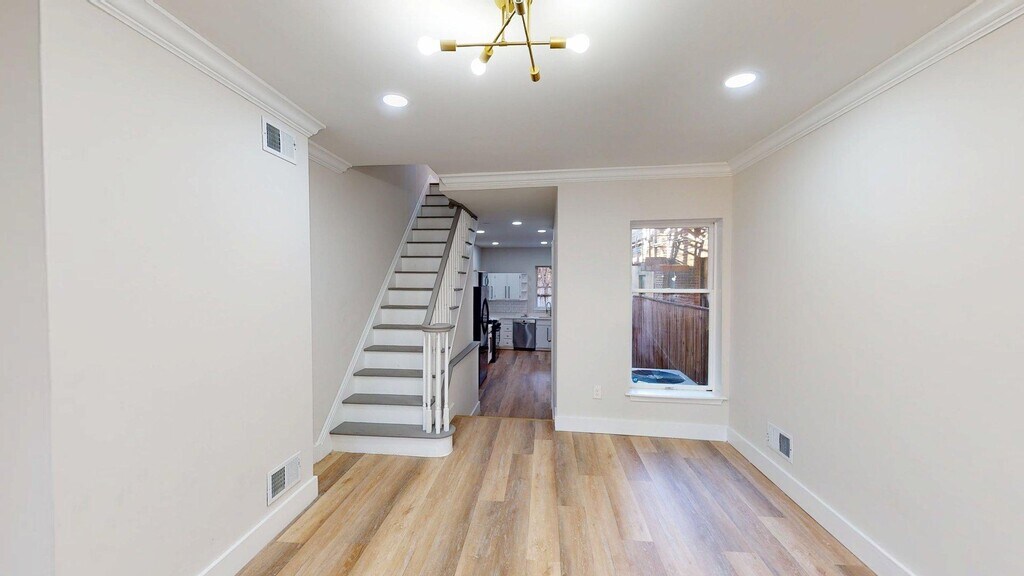 Experience city living with style at 1138 S Hanover St — a beautifully updated 3-bedroom, 2-bath home in the heart of Federal Hill. Featuring an open living area with wide-plank hardwood floors, a sleek kitchen with quartz countertops, subway tile backsplash, and stainless steel appliances, this home combines modern design with comfort. 1400 sqft Upstairs, enjoy spacious bedrooms, double vanities in the main bath, and abundant natural light throughout. Two private balconies offer the perfect space for relaxing or entertaining. Central air, in-unit laundry, and premium finishes make this home move-in ready. Conveniently located near the Inner Harbor, Federal Hill Park, and top restaurants.