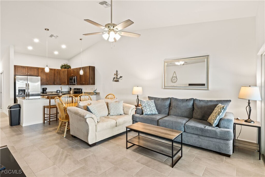 All Utilities Included! RIGHT SIDE BEING RENTED! This nearly new,turnkey furnished 3-bedroom + den,2-bathroom pool home with a 2-car garage is available now for annual rental in the heart of SW Cape Coral. Built in late 2023,this home offers modern comfort,stylish finishes,and the ultimate in hassle-free living — electric,water,cable/internet,lawn care,and pool maintenance are all included in the rent (with a monthly cap on utilities). Enjoy a bright and open floor plan with contemporary furnishings,a spacious kitchen with quartz countertops and stainless-steel appliances,and a split-bedroom layout that includes a versatile den—perfect for a home office or guest space. Step outside to your private screened-in pool and lanai,ideal for relaxing or entertaining year-round. Surrounded by lush landscaping in a quiet,well-maintained neighborhood,the home is located just minutes from Cape Harbour,shopping,dining,and waterfront activities. Don’t miss your opportunity to enjoy carefree,all-inclusive living in a stylish,almost-new home. Available now for long-term lease!