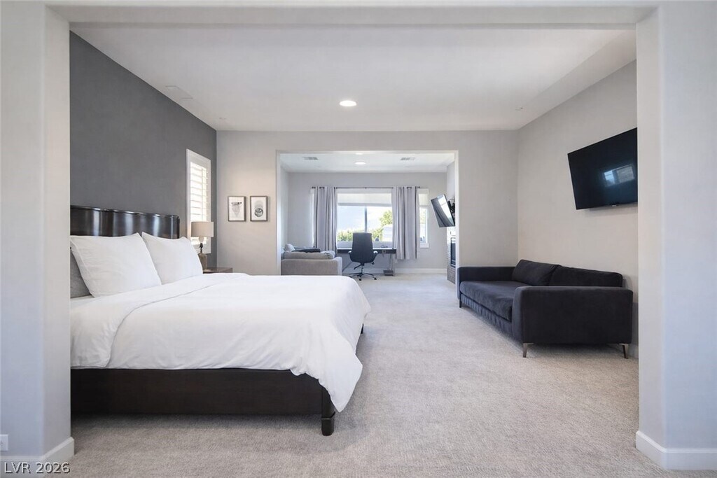 Rare VIEW Lot!! Fully Furnished Luxury One Level Rambler in a Guard Gated Community next to the Southern Highlands Golf Course. Very high ceilings throughout this ranch home. All Newer Furniture. Master Bedroom has sitting room and all the other bedrooms have a walk in closet and their own bathroom or connected to a Jack and Jill. Fully finished Air Conditioned Sunroom with entertaining space. 3 Car Garage and home has a fully fenced private backyard with pool and BBQ terrace area with views of the strip. Home is not suitable to hold parties. No Smoking inside. Photos and video upon request to serious inquiries only. This home looks much better in person! Available NOW. Lease price is for 1 year. Shorter term is available for an additional charge. Close to everything: Freeways, Restaurants, Raiders HQ, Allegient Stadium, Airport, Strip....