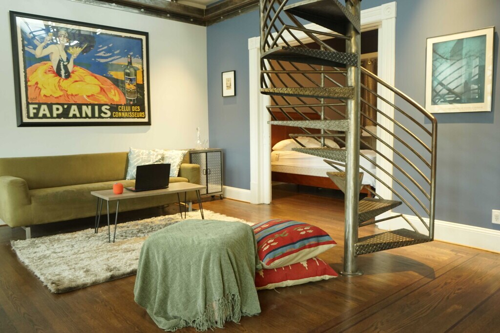 MOST UNIQUE APARTMENT in SF! LOFT APARTMENT THAT FEELS LIKE A WHOLE HOUSE! You won't find anything like this in the SF!- main floor is open at the front and back - with walls removed for a open kitchen and dining room and a double-height living room with a huge loft looking down into the 25ft tall space. New paint.- HUGE LOFT Bedroom with Views and it's own BATHROOM + WALK-IN CLOSET upstairs!- 1st Floor Bedroom is big enough for King size bed, with a Library Wall of Bookshelving! Beautiful wood trim. - SUNSET VIEWS with Sutro Tower front-and-center!- Oak floors with mahogany trim throughout, sliding pocket doors, TONS of light through lots of windows. - New kitchen w/modern white cabinets, stainless steel Fisher Paytel refrigerator, new 6-burner gas range/oven, new washer/dryer in the apartment- Full bathroom with modern fixtures - Industrial metal trusses and framework, glass and steel handrails with a quiet seating area with the BEST VIEW of the south and sunsets .- Shared BACK YARD WITH DECK and Italian marble dining table and lounge chairs - the perfect place to hang out.- Parking Space in front driveway. Small Garage available at extra $ fee.LOCATION PERFECT for Doctors, Nurses, Hospital Workers, Techies that go south on Caltrain or Easy access to 101 + 280. Bus line 19 to Convention Center and SOMA just a block away. Short walk to the Mission or Potrero Hill for restaurants and entertainment.*Move in NEXT MONTH - 12/1 or sooner! NegotiableCredit check and Applications only through /s/OZwShsr(20% discount from July, rent was $5650)