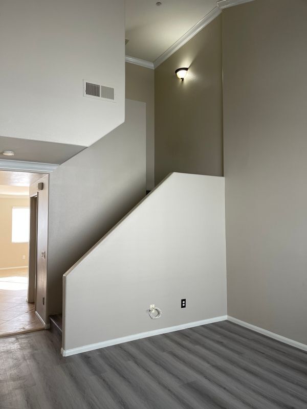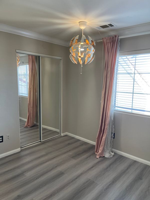 Very nice 3 story detached home in gated community with swimming pool. Short distance to schools, shopping, entertainment and downtown Garden Grove. Home has 1st floor bedroom and bathroom. 2nd floor is the main living area and kitchen. Home comes with fridge, washer and dryer. With central heating and cooling, air conditioning, and ceiling fans, you will experience year-round comfort in every room. Looking for a small family, stable income, good credit.