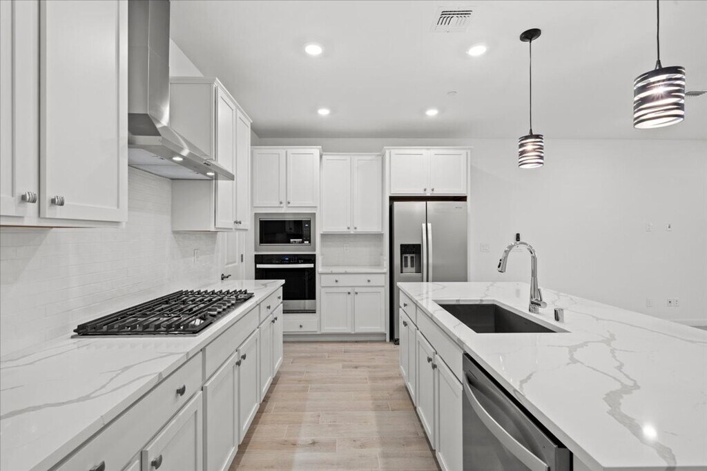Welcome to your dream home in the heart of Las Vegas. This brand-new residence offers three spacious bedrooms and three spa-inspired bathrooms, thoughtfully designed with an open, light-filled floor plan and modern finishes throughout.The chef’s kitchen is a true showpiece, featuring stainless steel appliances, elegant marble countertops, a stunning marble island, and sleek white cabinetry. With built-in appliances and a clean, modern aesthetic, this exceptional property blends comfort, style, and convenience in one perfect package. The adjacent dining area flows seamlessly into the inviting living space, creating an ideal setting for hosting guests or relaxing in style. Gorgeous flooring runs throughout the home, with no carpet on the main level. The ptimary bedroom is a gem including the impressive bathroom with dual sinks and contemporary walk-in showers. Enjoy indoor-outdoor living with a covered patio and balcony, or unwind at the community pool. Located within a gated Summerlin community, this home offers both privacy and peace of mind. Required Resident Benefits Package includes Utility Concierge, Renters Insurance, Credit Reporting, Fraud Protection, Tenant Rewards, Home Purchasing Assistance and more for $45/month. Rekeying and Cleaning fee is $450. We support fair housing rentals, free from discriminatory practices or policies.