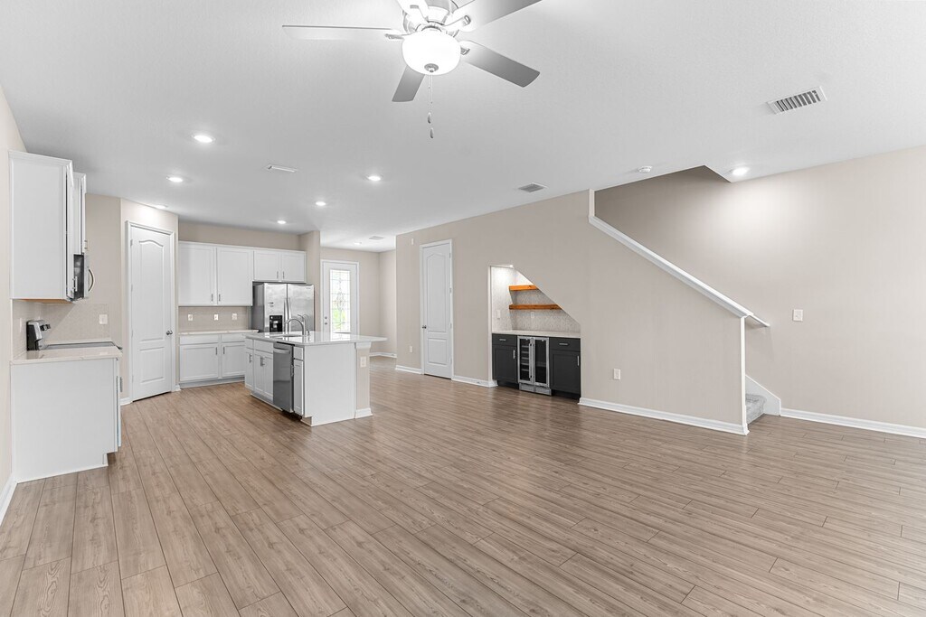 Beautiful 3 Bedroom, 2.5 Bath Townhome in Mirada – LGI Sorrento Model - Professional Lawn Care, High-Speed Internet, Cable & Mirada Amenities Included. Welcome to this stunning two-story Sorrento model, offering modern comfort and elegant design throughout. The chef-ready kitchen is a true highlight, featuring stainless-steel appliances, quartz countertops, tall wood cabinetry, and a custom wine bar—perfect for entertaining or unwinding after a long day. From the moment you step inside, you’ll notice the eye-catching details and upgraded finishes that make this home stand out. Upstairs, you’ll find all bedrooms conveniently located along with a full bath and separate utility room, providing functionality for everyday living. The spacious primary suite features a luxurious bathroom complete with a double-sink vanity, separate shower, and a private door for added comfort. With its thoughtful layout, stylish upgrades, and inviting wine bar, this townhome combines modern sophistication, space, and practicality—ready to welcome you home to Mirada.