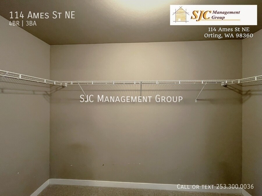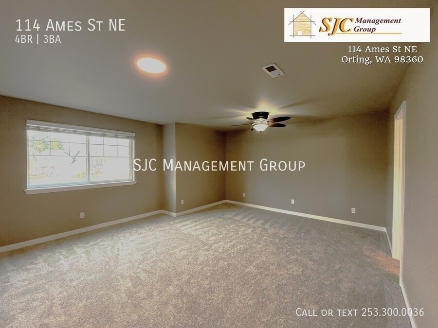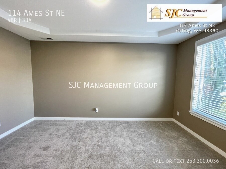 Gorgeous home in the beautiful Orting Valley. Enjoy views of Mt. Rainier, access to schools, parks, restaurants, golf and more! 4 bedrooms, plus office/den, 2.5 bathrooms. Upgrades include new carpet and paint, vinyl plank flooring, and AC. Downstairs features a large den/office with double doors, a powder room, and hallway closet. The kitchen showcases granite counter tops, a huge walk-in pantry, stainless steel appliances, and large island, then seamlessly opens to a dining space and family room with gas fireplace. Step out to the huge fully fenced backyard, complete with a matching shed. Upstairs you will find the spacious Primary Bedroom with en-suite bathroom featuring double sinks, soaking tub, separate shower and large walk-in closet. Three more bedrooms, one with a walk-in closet, the main bathroom, and a laundry room with provided washer & dryer. Schedule a showing or take our virtual tour today! Pets [breed and size restrictions may apply] are allowed, pet screening required. Approved pets will incur a pet mitigation fee (between $150 and $350) at move-in + a monthly pet fee of $35-$75, max two pets. For more information or to set up a viewing please contact the leasing team at SJC Management Group today! Please note showings can be scheduled online at any time. After hours or weekends, showings must be scheduled and confirmed by our staff before the end of the business day. Our business hours are Monday-Friday from 9 am to 5 pm. We are closed for all major holidays. ADDITIONAL TERMS: Required $85 at move in and additional $35 per month Resident Benefit Package offers an array of advantages. With this package, you'll enjoy convenient benefits such as regular delivery of furnace filters and additional perks designed to enhance your renting experience. Utilities: Tenant pays all Deposit: $3100