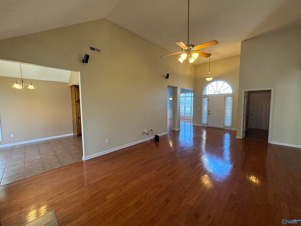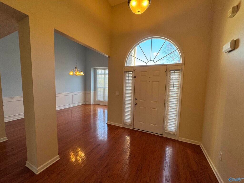 Beautiful one-level home featuring vaulted ceilings and an open,spacious layout. The formal dining room offers soaring ceilings and plenty of natural light,creating an ideal setting for gatherings. Enjoy the fenced,flat backyard—great for outdoor activities or pets. Conveniently located near Hwy 53 and approximately 10 minutes from Redstone Arsenal,this home provides easy access to shopping,dining,and major employers.