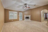 House interior has been freshly painted with a neutral beige color (Photois are from previous listing). Wonderful single-story floorplan with 3 bed 2 bath that is perfect for entertaining your friends and family. Kitchen/Breakfast Area/Family Room all open up to each other and will accommodate reasonably large gatherings. Kitchen has an Island, lots of cabinet and granite counter space. The Family Room has a fireplace and looks out to the back covered patio and yard. Nice sized primary bedroom with walk-in closet, double vanity, garden style tub and separate shower. The extra bedrooms are nice sized too and conveniently located to the secondary bathroom. The yard has lots of greenery and the backyard is like a private oasis and has a covered patio. The fencing has a gate on each side of the house and there is a gate to the open area immediately behind the lot. The property also includes a refrigerator, washer, dryer, water softener and sprinkler system.
