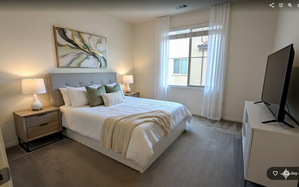 Welcome to your French Contemporary Style dream home in the beautiful high-end Portola Springs community in Irvine! Situated in a neighborhood setting with trees, street lamps and plenty of street parking for guests, this highly upgraded turnkey home offers 2 master bedrooms with 2.5 baths. Every bedroom is a private en suite with its own bathroom and closet- Master bathroom has dual vanity. Recessed lighting ability to dim throughout the home with high ceilings, crown molding, real oak wood in main living area and upgraded hardwood floors. Enjoy the open floor plan with the well-appointed kitchen that is equipped with stainless steel appliances with 6 burner stove, beautiful cabinets, plenty of storage and upgraded granite counters. Living area is well entertained with a balcony looking out to a quiet street with no neighbors in front. Oversized 2 -car attached tandem garage with direct access to entry level, extra space to be used as storage or work area. Upstairs stacked laundry to keep chores inside on the main level. Conveniently located walking distance to private community swimming pool, spa, clubhouse, playground, large spaces for relaxation, recreation, and socializing. Nearby Irvine Blvd, Portola Parkway, and two toll roads all provide easy access to shopping, restaurants, entertainment, and top awarded Irvine schools. Be part of this high-end Portola Springs community, one of Irvine's best and safe walkable communities! Please note that Photos are from Model home. We will send a video walkthrough as soon as connected.