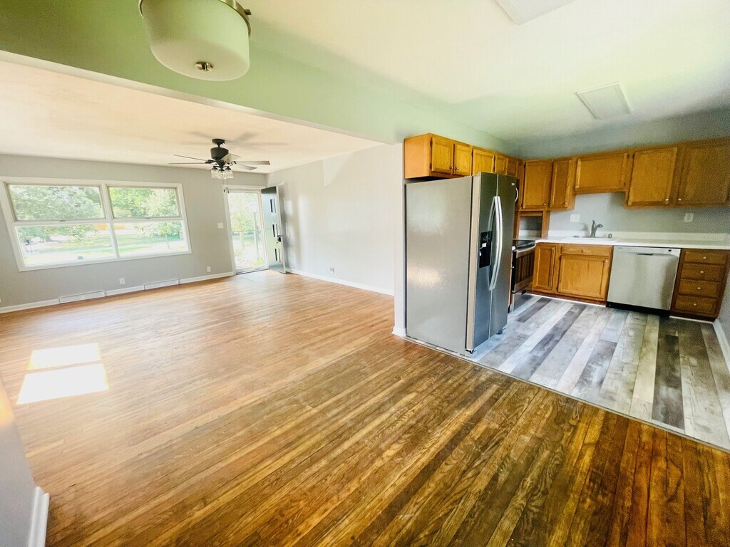 This home is ready for immediate move in! It is a beautiful three bed one bath home with a HUGE fenced in backyard. Hardwood floors throughout, it features a large basement with vinyl flooring, and beautiful kitchen with lots of cabinet space. The kitchen includes stainless steel appliances. Dishwasher, double door fridge, built in microwave and stovetop range. Plenty of windows for natural lighting. The home sits on a one-way street and has a wonderful scenery. With a one car garage and a long driveway there is tons of space for parking. This will not last long! Call now to view the home and apply! Offered by Abbeyhill Realty and Management Jamie Mosley, Broker *We Are Fair Housing Compliant* Tenant is reponsible for all utilities and lawn care