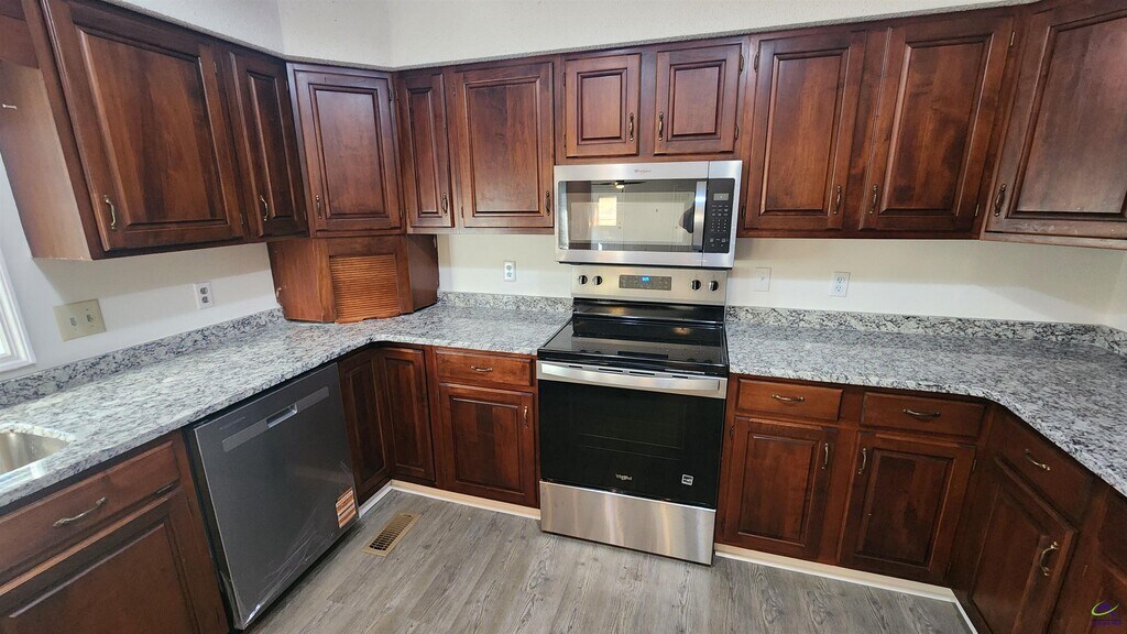 Welcome to your new home! This charming all-brick residence offers three bedrooms and two and a half baths on a large, fenced corner lot. Step inside to discover a beautifully updated interior with new LVP flooring, FRESH paint and NEW ceiling fans in every bedroom. The kitchen features NEW granite countertops. NEW modern lighting fixtures and NEW appliances (range, refrigerator, dishwasher, microwave) are included. There are also two wired are on the property. School zones are Veterans High, Bonaire Middle, and Hilltop Elementary. PET FRIENDLY!