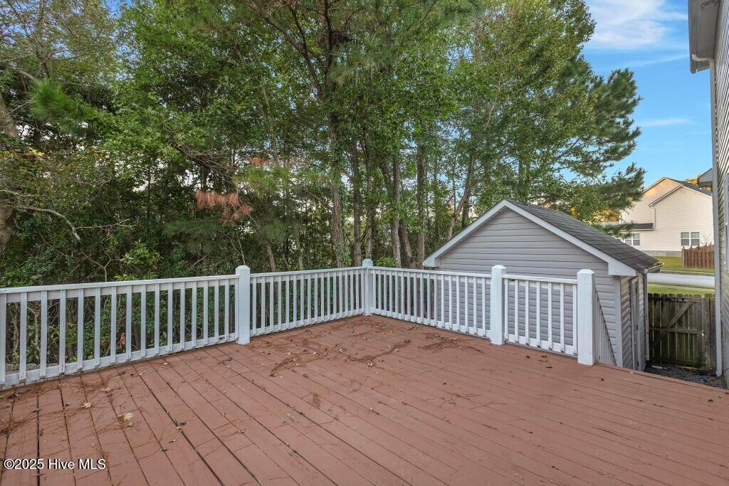 Adorable dollhouse with 3-bedroom, 2.5-bathroom located in Aragona Village just minutes away from Camp Lejeune, making it an ideal location for those who value convenience. The home features a cozy eat-in kitchen equipped with a pantry and breakfast bar, perfect for those who love to cook. The master suite has a spacious tray ceiling, walk-in closet and a private bathroom featuring a walk-in shower. Separate laundry room with washer/dryer (as is). The oversized rear deck and privacy fenced backyard provide ample space for outdoor activities or simply enjoying the North Carolina weather. A storage shed is also available for extra storage needs. The neighborhood community dock which leads to the river, adds a unique charm to this property. This home allows up to 2 pets with owner approval, $150 non-refundable pet fee per pet. Experience the best of Jacksonville living in this beautiful home.