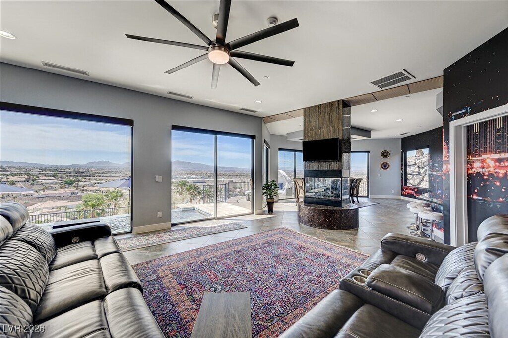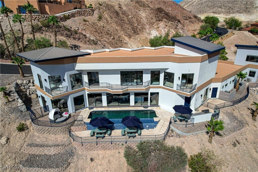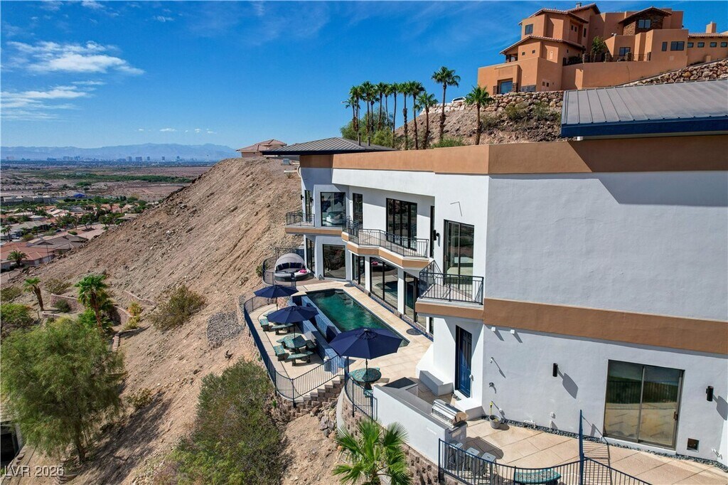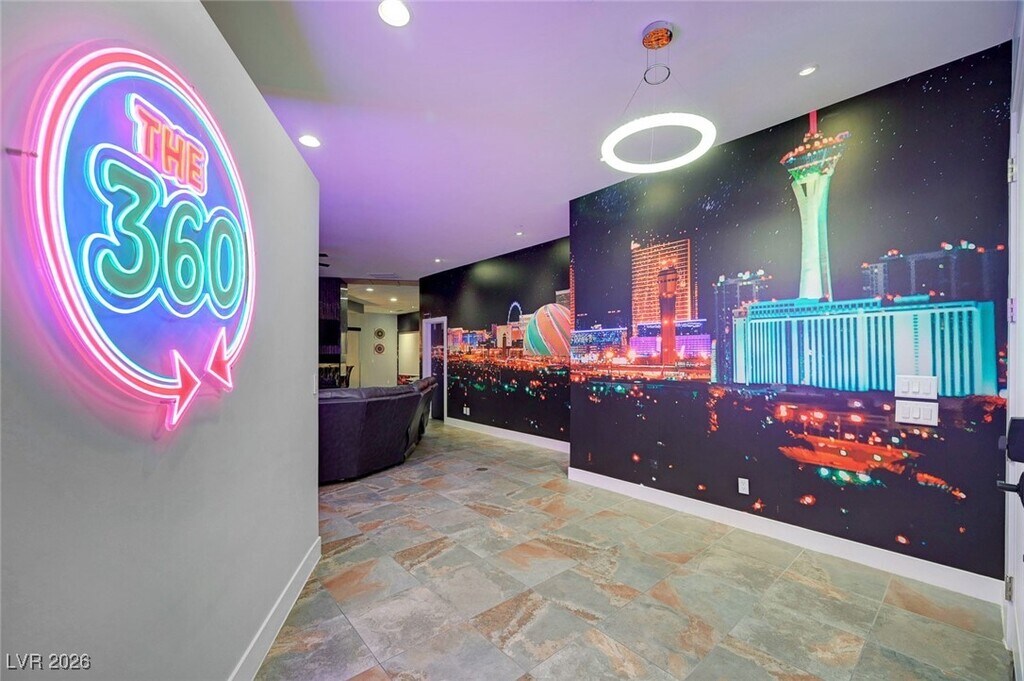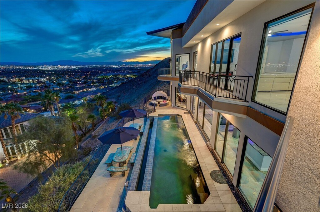 This luxurious fully-furnished 5-bed 7 bath hilltop mansion, known as The 360," is situated in the prestigious Calico Hills gated community of Henderson. Perched on a hillside, the estate offers breathtaking panoramic views from nearly every room! With its sleek and modern design, this stunning retreat seamlessly blends luxury, comfort, and entertainment, making it an ideal haven for those who value elegance and unforgettable experiences. The gourmet kitchen is a culinary haven, fully stocked and flows seamlessly into the spacious living areas, making it easy to entertain & socialize while cooking. The resort-style backyard is a true oasis, showcasing a stunning negative-edge pool that blends seamlessly into the surrounding landscape. The outdoor BBQ area is perfect for al fresco dining while enjoying breathtaking views of the Las Vegas Strip and surrounding mountains. There is also a dedicated game room, state-of-the-art movie theater, and full surround sound throughout the home."