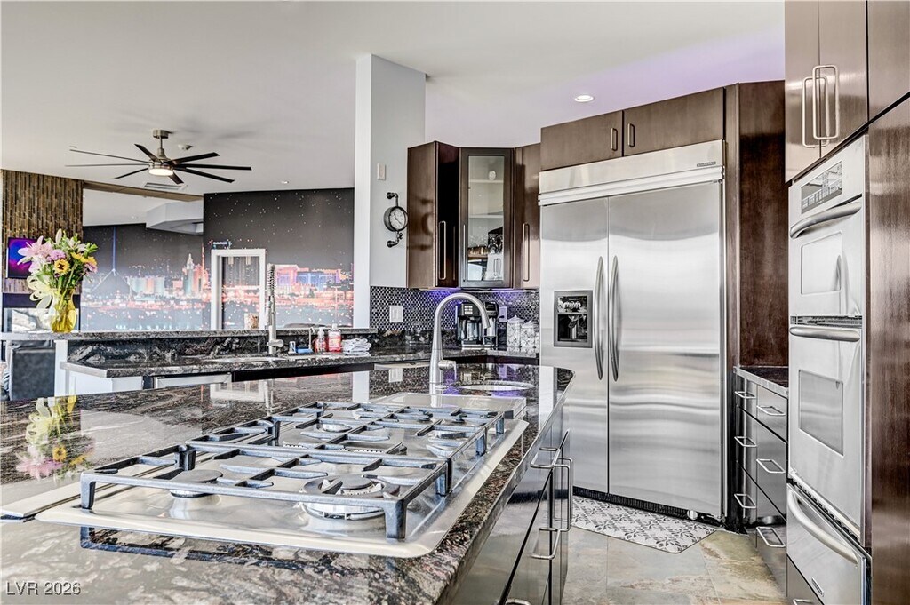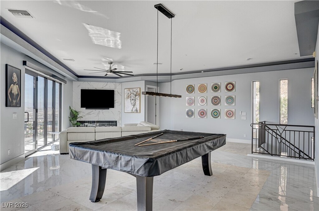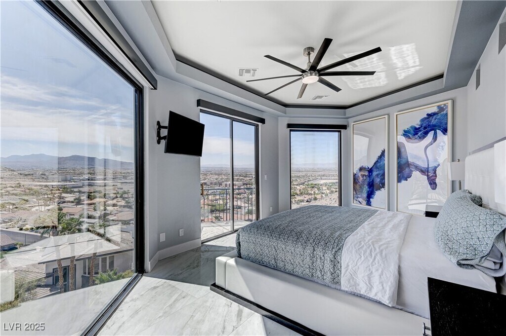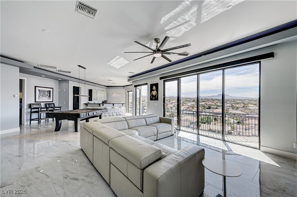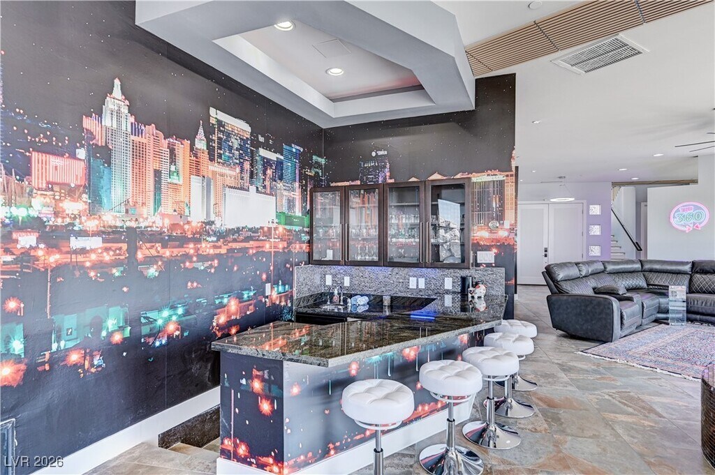This luxurious fully-furnished 5-bed 7 bath hilltop mansion, known as The 360," is situated in the prestigious Calico Hills gated community of Henderson. Perched on a hillside, the estate offers breathtaking panoramic views from nearly every room! With its sleek and modern design, this stunning retreat seamlessly blends luxury, comfort, and entertainment, making it an ideal haven for those who value elegance and unforgettable experiences. The gourmet kitchen is a culinary haven, fully stocked and flows seamlessly into the spacious living areas, making it easy to entertain & socialize while cooking. The resort-style backyard is a true oasis, showcasing a stunning negative-edge pool that blends seamlessly into the surrounding landscape. The outdoor BBQ area is perfect for al fresco dining while enjoying breathtaking views of the Las Vegas Strip and surrounding mountains. There is also a dedicated game room, state-of-the-art movie theater, and full surround sound throughout the home."