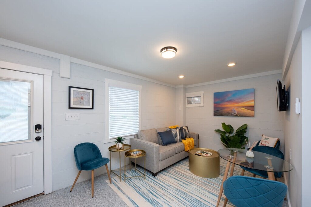 The advertised rate of $4,295/month is the lowest available price, based on a 30 day(s) stay with a move-in date of October 20, 2026. Rates vary depending on the duration of stay, season, and other parameters. For exact pricing and additional pricing components, please visit our website and enter your desired move-in and move-out dates. The rate is applicable when billed upfront; it can be higher if billed in multiple payments. Nestled in Ocean City, feel at home in this bright and comfortable 1-bedroom, 1-bath apartment, just a 10-minute walk from the beach and boardwalk. This apartment features modern furnishings and Smart TVs in every room. The fully stocked kitchen includes stainless steel appliances, all cookware and dishes, a toaster, blender, and a Keurig coffee maker. Enjoy the ground-level patio with lounge seating. Beach gear is provided, including 4 beach tags, 4 beach chairs, a cooler, a wagon/cart and an umbrella. Linens, towels, and essential amenities, such as paper towels, toilet paper, hand soap, dish soap, dishwasher detergent, laundry detergent, trash bags, body wash, shampoo, and conditioner, are included. This home is equipped with mini-split style AC and heating units in every space. A washer and dryer are on-site for easy laundry. Off-street parking is available for one vehicle, and ample free street parking is available in the neighborhood. The neighborhood offers a charming and convenient setting, with the beach and boardwalk just a short walk or bike ride away. The nearby boardwalk is a hub of activity with amusement parks, eateries, shops, and entertainment options. The area boasts a variety of dining options, ranging from casual beachside cafes to more upscale restaurants. Explore local boutiques, surf shops, and convenience stores for all your shopping needs. There are several parks and recreational areas nearby, such as the Ocean City Community Center, which includes a playground, tennis courts, and sports fields. The Ocean City Golf Course is just a short drive away. The neighborhood is well-connected by local public transportation and is very bike-friendly with numerous bike rental shops and bike lanes. Quiet hours are between 10 pm and 8 am. Guests must be respectful of neighbors, other guests, and the overall community. Any disturbance incident that results in police involvement may result in the immediate termination of a reservation and removal from the rental without refund or warning. There is a zero-tolerance policy. All properties are absolutely no smoking of any kind, including cigarettes, cannabis, vapes/e-cigs, etc. Smoking is permitted outside and well away from any doors or windows, and all debris must be cleaned up. Any evidence of smoking will be automatically billed an additional cleaning fee. Guests are fully responsible for any damage, excessive cleaning, or disturbances caused by their pets during their stay. By bringing a pet onto the property, you agree to assume all liability for your pet's behavior and to indemnify and hold harmless the property owner and management from any claims or damages arising from your pet. Guests with pets are 100% responsible for keeping their pet under control at all times. Size/weight and breed restrictions may apply. For listings marked “no pets,” this is strictly enforced. If you have a service animal, please book one of the pet-friendly listings. There are security cameras present on this listing in the following locations: exterior front entryway/doorbell camera, exterior rear entrance and deck/patio/driveway area. These cameras may record audio and video footage 24/7. [SI]