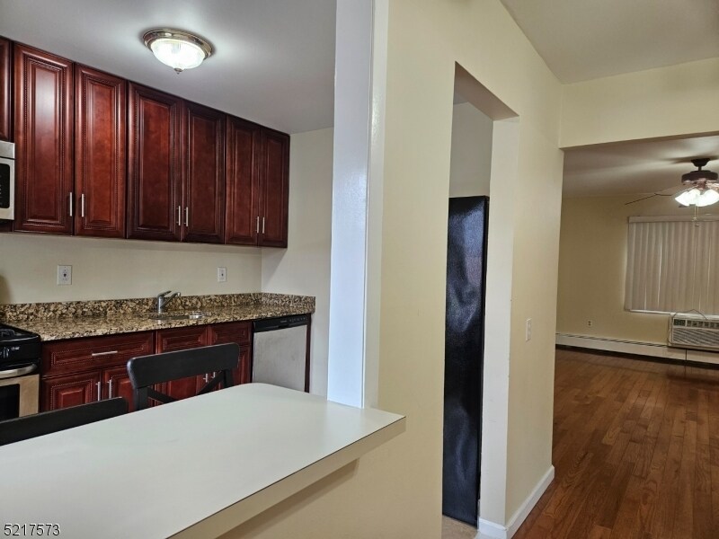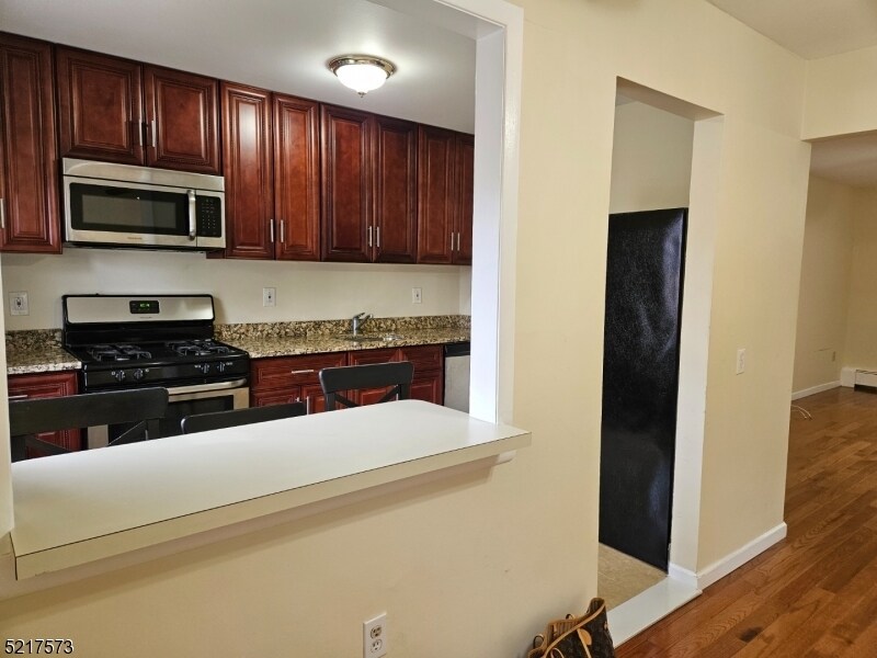 AMAZING RENTAL OPPORTUNITY! RENOVATED FIRST FLOOR CONDO WITH ONE CAR GARAGE (for additional fee) AND EXTRA PARKING SPACE. BRIGHT AND OPEN WITH HARDWOOD FLOORS THROUGHOUT . KITCHEN WITH STAINLESS STEEL APPLIANCES AND GRANITE COUNTER-TOPS. FANTASTIC LOCATION IN THE CENTER OF TOWN CLOSE TO SHOPPING, SCHOOLS AND RESTAURANTS. BUS TO THE CITY JUST STEPS AWAY.GREAT COMPLEX WITH OUTDOOR IN-GROUND POOL! HEAT AND WATER INCLUDED. TENANT RESPONSIBLE ONLY FOR ELECTRIC.