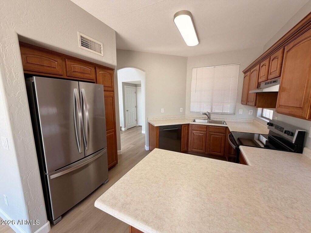 Welcome to this beautifully updated 3-bedroom,2.5-bath two-story home in Avondale. Fresh interior paint and brand-new flooring throughout mean no carpet and a clean,modern feel. Soaring ceilings and abundant windows fill the home with natural light. The kitchen features ample cabinet space and new stainless steel appliances. The primary suite includes an ensuite bath with double sinks,new vanity lighting,and a private toilet room. Two additional bedrooms share a full bath. Laundry closet with storage shelf and new washer and dryer included. Ceiling fans in each room,a 2-car garage,and a spacious low-maintenance backyard with covered patio. Conveniently located near I-10,schools,parks,and shopping. Up to 2 spayed/neutered pets welcome with $450 deposit per pet. Move-in ready home!!