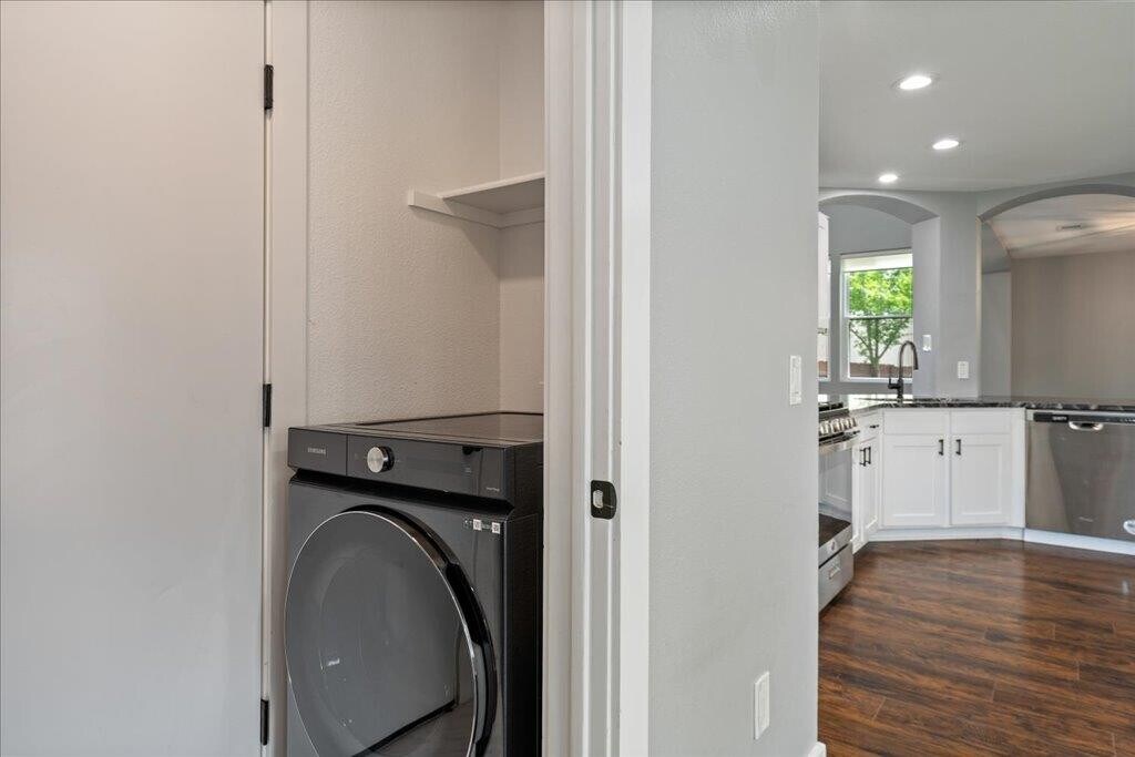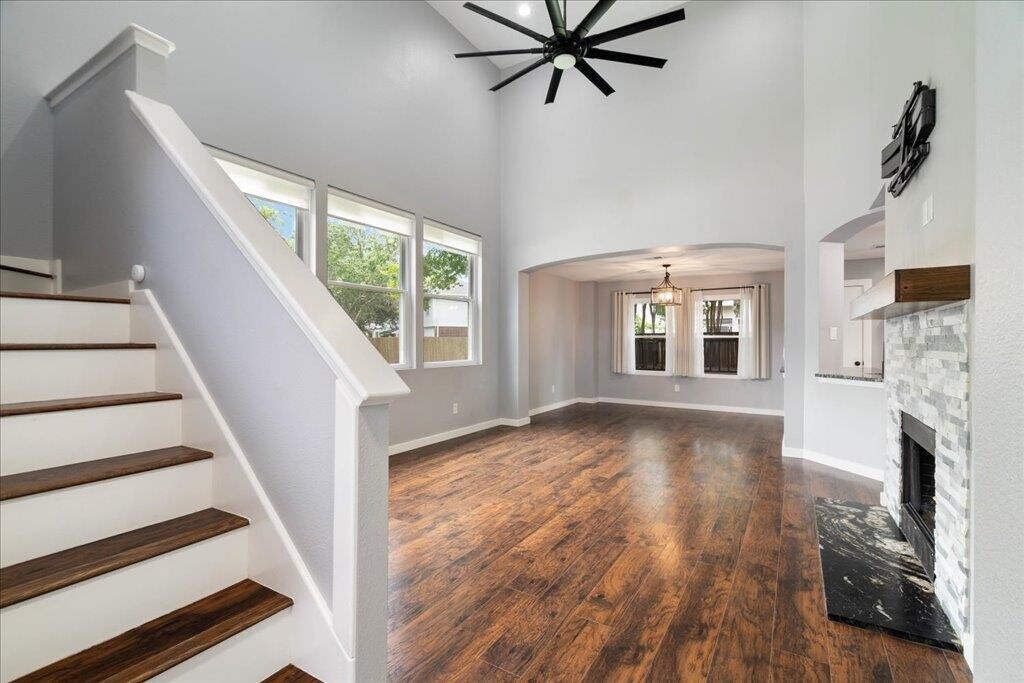 Discover this beautifully updated 3-bedroom, 2.5-bathroom home nestled on a quiet cul-de-sac, featuring a massive private backyard and a unique patio deck perfect for entertaining, relaxing, or playing. Step inside to soaring ceilings in the living room, accented by an open staircase with views to both floors and a stunning stonework fireplace. The expansive kitchen offers ample space for cooking and gathering, while sleek bathroom upgrades add a refined look throughout the rest of the home, and brand new windows with a transferable lifetime warranty. Convenient location to Samsung and Tesla Gigafactory. There's even access to the community playground, pool, and fitness gym. As the most updated house in the neighborhood, it comes complete with a Samsung BeSpoke Refrigerator, washer, and dryer - making it move-in ready and waiting for you!