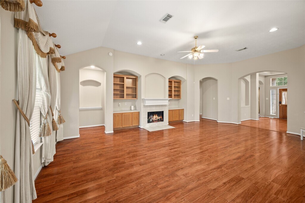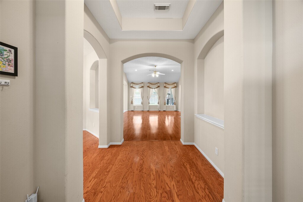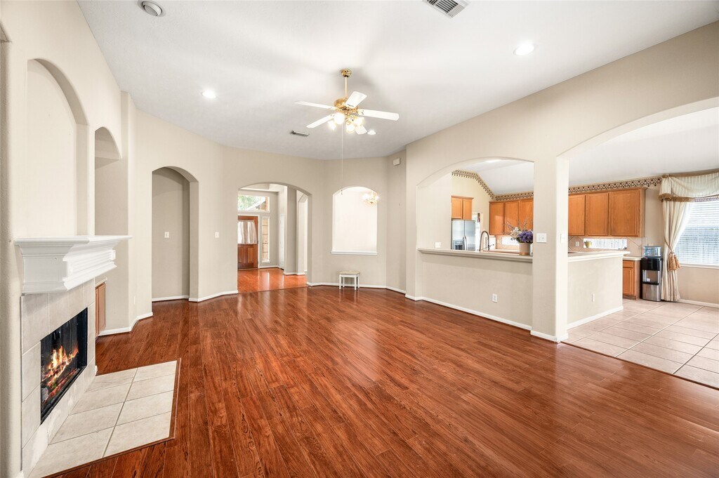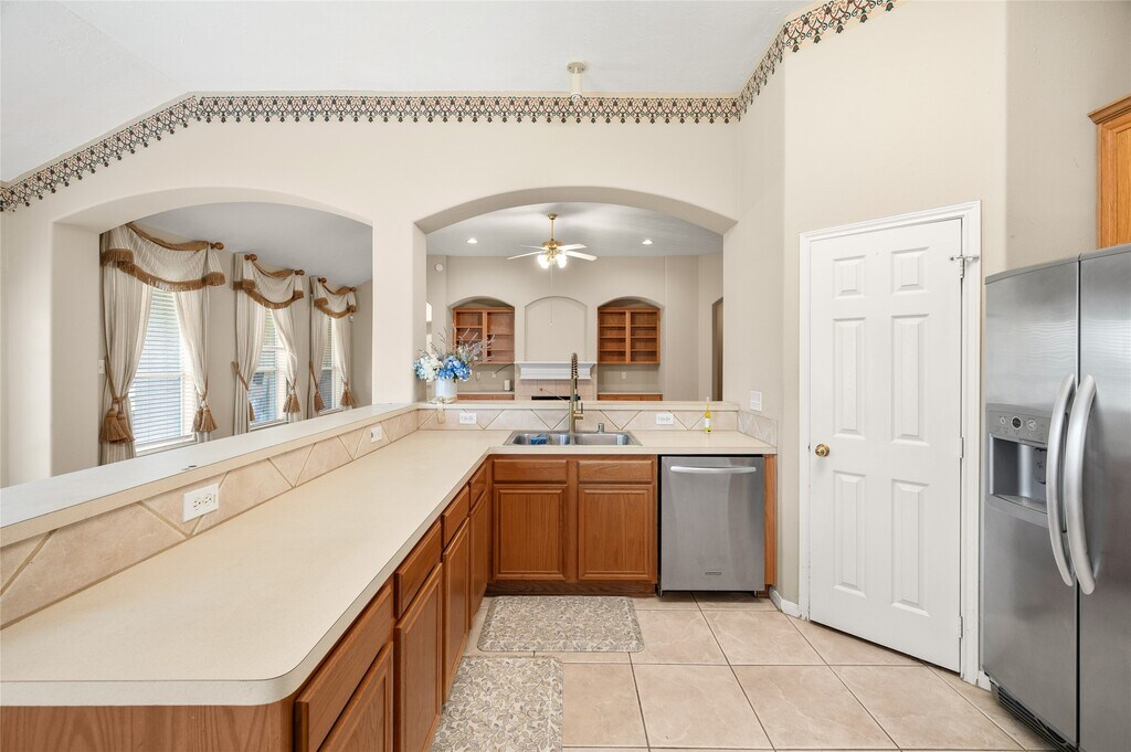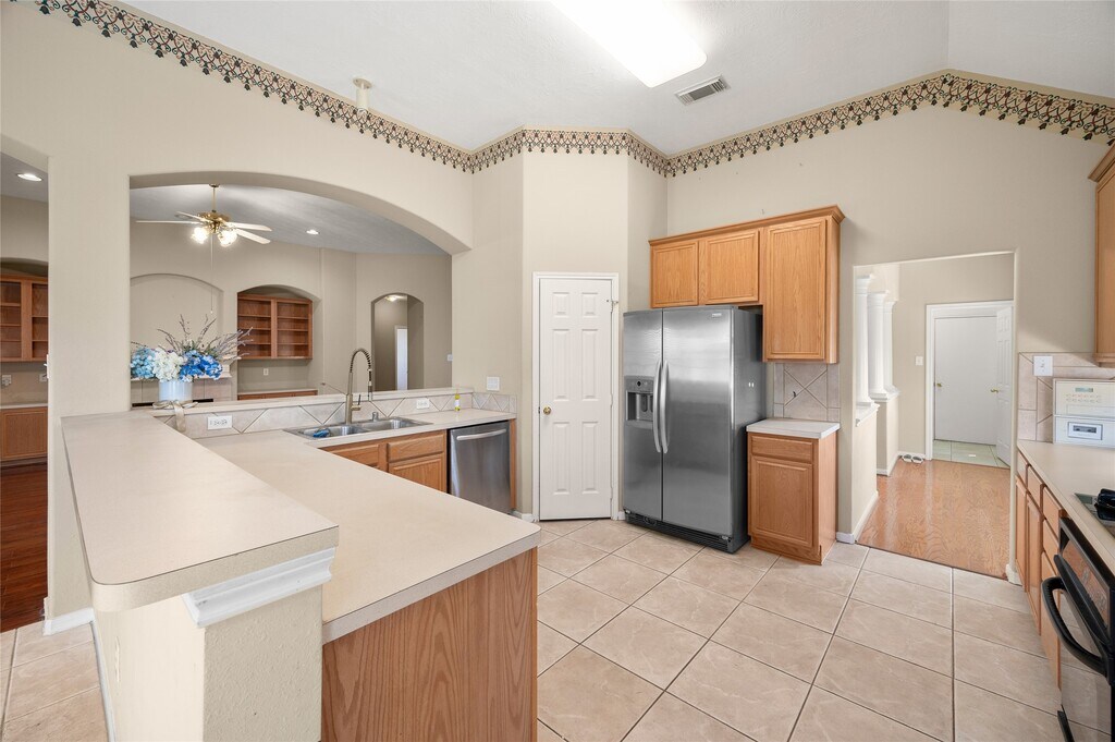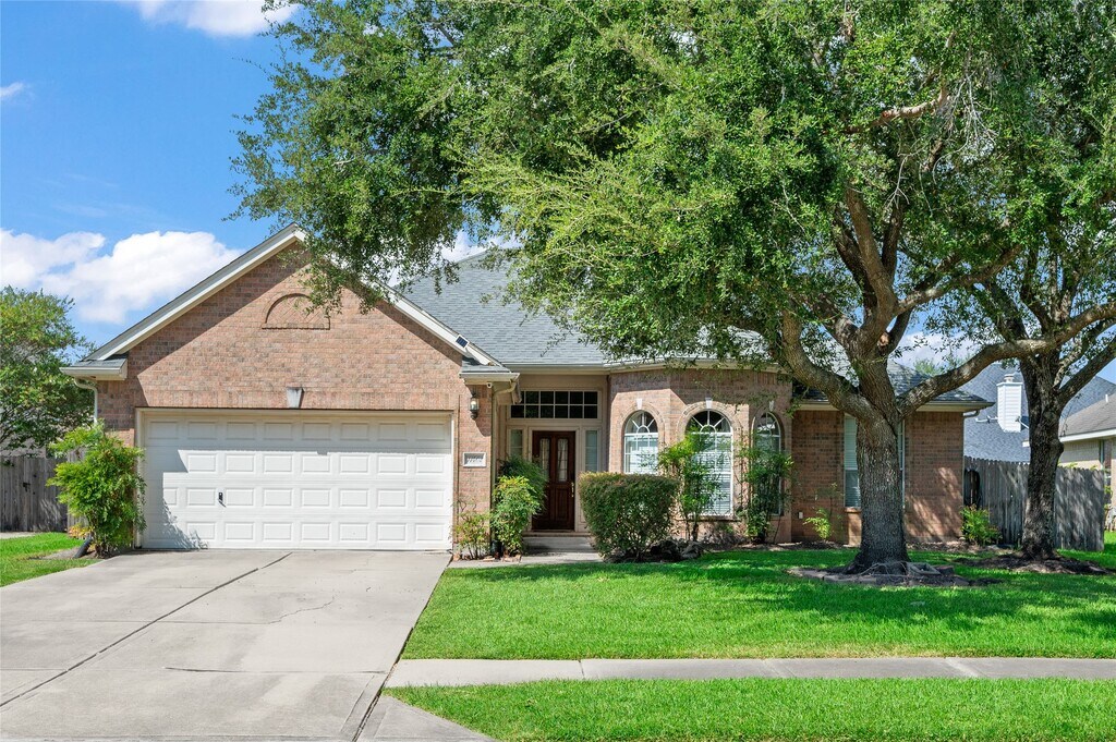 Welcome to 11402 Bucks Bridge! This beautifully maintained one-story brick home offers timeless curb appeal and a spacious,open layout. Inside,you’ll find high ceilings,abundant natural light,arched details,and a generous living/dining area. The kitchen features ample counter space,stainless steel appliances,and a breakfast bar that opens to the family room with backyard views. The private primary suite boasts a spa-like bath with dual sinks,soaking tub,and separate shower. Secondary bedrooms are well-sized,and the versatile study/flex room provides extra space for work or play. Step outside to a covered patio and large backyard shaded by mature trees. Conveniently located near schools,shopping,dining,and with easy access to Hwy 6. Landlord does not allow subletting,Airbnb,or short-term leases. MLS# 77741953