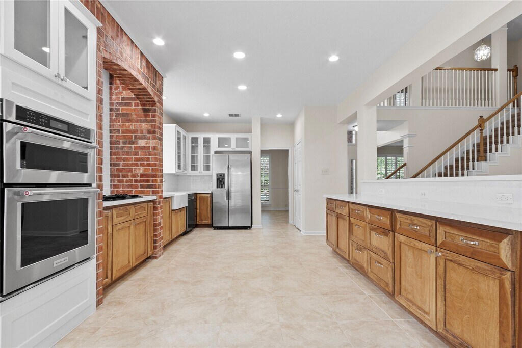 Beautifully renovated home in exclusive Lakewood Crossing! Tile floors down & all bathrooms. Gourmet kitchen w/ nice cabinets for creating a grand family meal. Quartz kitchen counters & a country-style sink. Kitchen opens to large family room w/ high ceilings & warm fireplace. Lots of natural lighting—just open custom blinds thruout. Spacious primary BR w/ ensuite bath has soaking tub,shower & quartz vanities. Private library/office w/ fireplace. Updated baths. Large backyard w/ patio deck & many shade trees. An awesome rental opportunity! MLS# 12730082