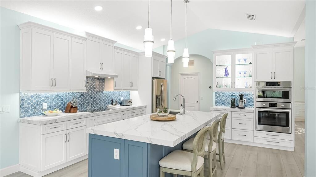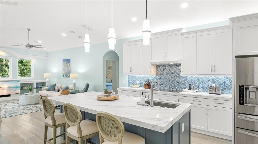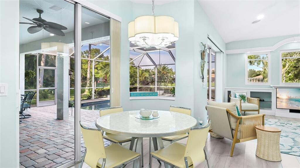 Available December 13,2025 through March 31,2026 Welcome to your seasonal escape in the exclusive River Wilderness Golf & Boat Club community. This beautifully remodeled home is set on a peaceful pond with complete privacy and is designed for relaxation,gathering,and enjoying the Florida lifestyle to the fullest. The highlight of this home is the expansive lanai and saltwater pool area. The outdoor living space feels like your own private resort,featuring a heated pool and spa,a three-tier fountain with fire features for dramatic evening ambiance,and plenty of comfortable seating for dining,lounging,and unwinding. The entire lanai is enclosed with No-See-Um screening for year-round comfort. Inside,the open and airy floor plan creates a welcoming atmosphere. The remodeled kitchen is fully equipped for home cooking and entertaining,featuring quartz countertops,custom cabinetry,café-style lighting,and luxury appliances including an induction cooktop and double oven. The main living spaces offer beautiful views of the pool and pond,providing a calm and inviting backdrop throughout your stay. Sleeping accommodations include: • Primary Suite: King bed,pond views,walk-in closet,and spa-inspired bathroom with dual vanities and walk-in shower • Guest Suite: Queen bed with en-suite bath and direct access to the pool • 3rd Bedroom: Murphy bed – bright and versatile space that easily converts for sleeping or lounging • 4th Bedroom: Dedicated office for remote work,reading,or quiet retreats. The community of River Wilderness is gated and surrounded by natural beauty. Guests have access to a private community boat ramp to the Manatee River for boating,fishing,and sunset cruising. Optional membership opportunities are available at The Club at River Wilderness,offering golf,fitness,tennis,pickleball,dining,and a resort-style pool if desired. Conveniently located between Sarasota and St. Petersburg,you’ll enjoy easy access to Gulf Coast beaches,Lakewood Ranch dining and shopping,new Parrish restaurants and conveniences,and two major airports within approx. 45 minutes. If you’re seeking a peaceful,refined,and beautifully appointed seasonal retreat with exceptional outdoor living,this home is an ideal place to settle in and enjoy the Florida winter in style. MLS# A4671505
