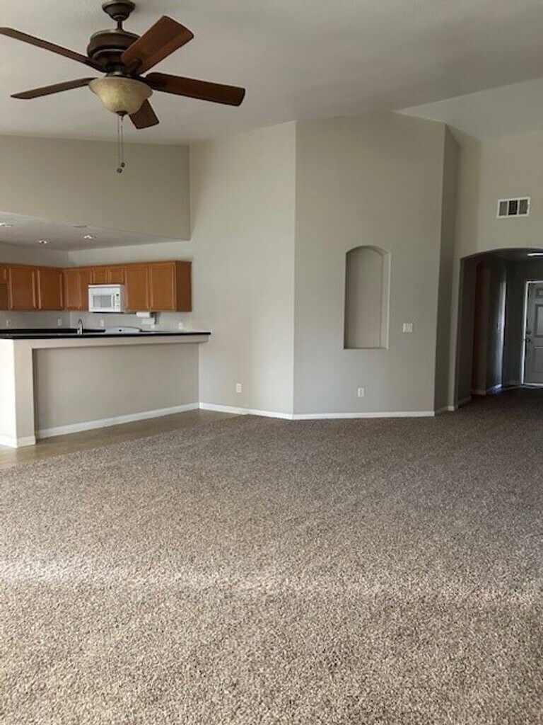 NW Corner lot Split wing home a must see!! Living room, Open kitchen w/granite counter tops & pantry, Large Master bedroom right off the living room, New Carpet, Ceiling fans throughout, Indoor laundry, Backyard is a nice size w/covered patio & gardener included, 2 car garage, Close to shopping centers, schools & parks, Pets negotiable w/deposit!!