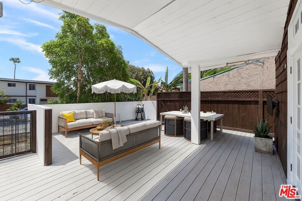 Situated in one of Venice's most desirable neighborhoods just behind famous Abbot Kinney Blvd, this fully remodeled 2-bedroom, 3-bathroom bungalow offers a welcoming blend of character, space, and coastal charm. The generous living area opens directly to a large, partially covered front deck perfect for indoor-outdoor entertaining and every day enjoyment. Skylights in both the living room and kitchen fill the home with natural light, enhancing its warm and inviting atmosphere. The kitchen is equipped with stainless steel appliances and flows easily into the main living space, ideal for casual living and hosting. Each bedroom features access to the outdoor area, creating peaceful personal retreats. All three bathrooms include showers, with the primary suite boasting a spacious standalone shower and dual vanity. Additional highlights include a laundry area with a stackable washer and dryer, and one dedicated parking spot. Located just minutes from Venice's best restaurants including RVR, Felix, Gjelina, Wabi on Rose, and countless more - you will find yourself at home on Abbot Kinney Blvd, Rose Avenue, Main Street, and the beach. Experience the perfect balance of relaxed beach living and vibrant city energy in this one-of-a-kind Venice bungalow. MLS# 25589827
