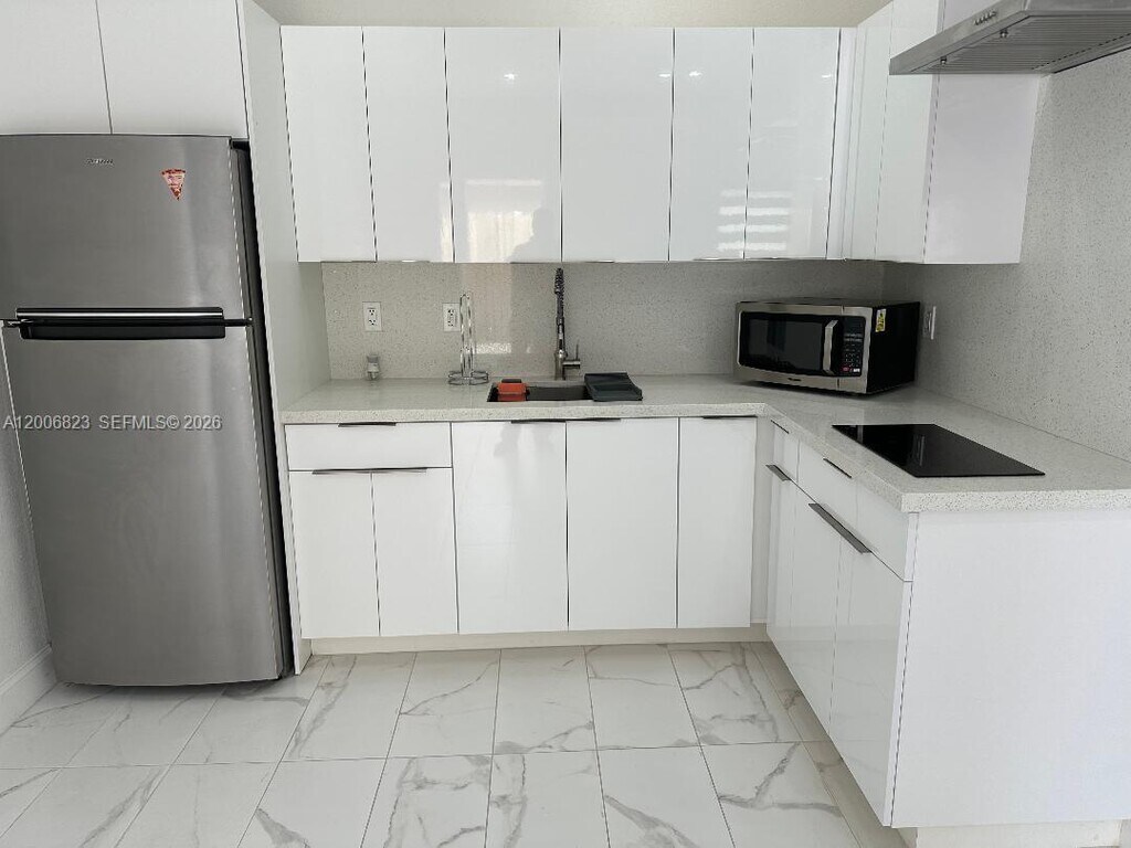 Remodeled Efficiency with private entrance to the left side of the main house featuring newer kitchen with refrigerator, microwave, top range and extractor opened to the living area. Closet has drawers and hanging poles. Bathroom was also remodeled with a shower. MLS # A12006823