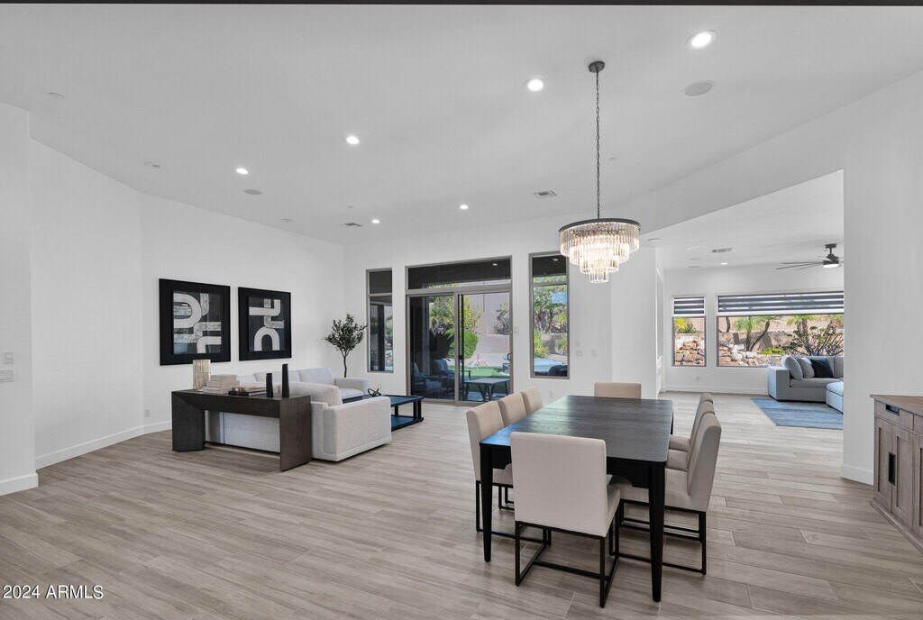 Sitting on top of the hill in 24-hour guard-gated Cimarron Hills is this stunning,fully remodeled 4 bedroom + office,3.5 bath home. The split floor plan features 2 king and 2 queen bedrooms. The second bedroom has an en-suite bathroom,perfect for guests. The kitchen features stainless steel appliances,quartz counters and a coffee/beverage station with a wine refrigerator. A private,resort-style backyard with a heated pool & spa,rock waterfall,a built in BBQ with a bar,a putting green and a covered patio with seating and a TV to take advantage of the beautiful indoor outdoor living that AZ offers. The exclusive Cimarron Hills community is just around the corner and offers a heated pool & spa,fitness center,tennis/pickleball courts and a clubhouse all set against the amazing backdrop of the McDowell Mountains. This home is close to several luxury resorts,chef-driven restaurants,world class shopping,top rated golf courses and great hiking trails.