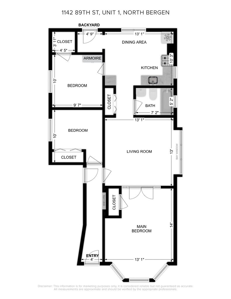 Welcome to North Bergen! Experience this spacious 3 Bed/1 Bath rental. The unit features an eat-in kitchen, living room, 3 bedrooms w/ ample closet space, and bathroom. Shared laundry room and backyard area. Easy on street parking and driveway parking additional fee. The unit is conveniently located near shops, schools, transportation to NYC, and James J. Braddock Park. Don’t miss out—schedule your showing today!