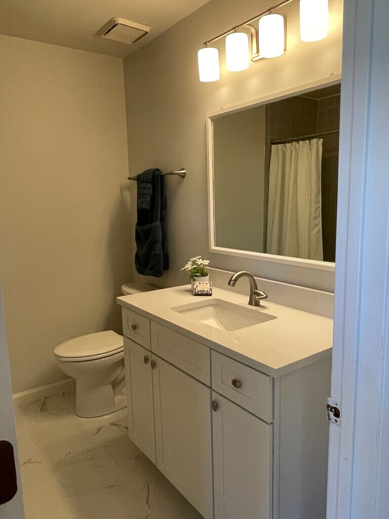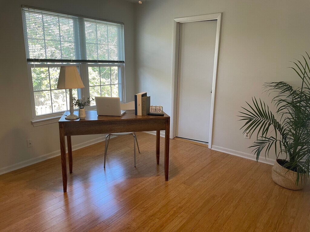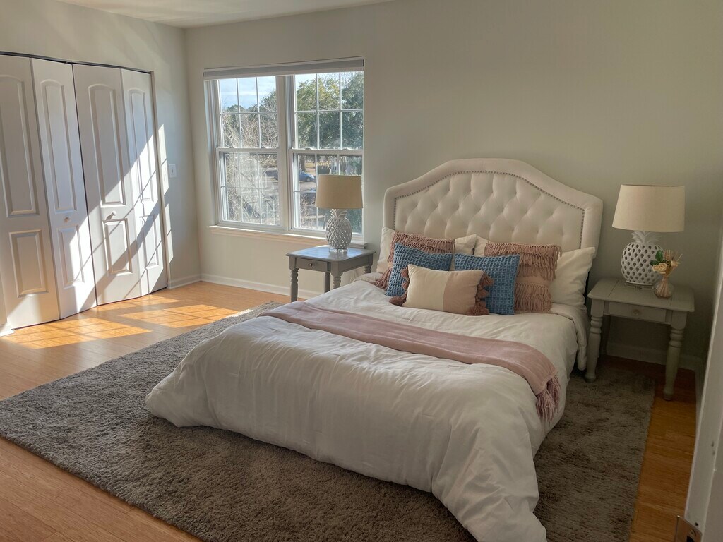 Beautifully renovated 2-bedroom, 2.5-bath end-unit townhome in a prime Mount Pleasant location. This home features a bright open floor plan, smooth ceilings, high-end finishes, and a private fenced backyard, offering a rare combination of comfort, style, and convenience. Recent high-end renovations include smooth ceilings, quartz countertops throughout, and two fully renovated en-suite bathrooms with brand-new KraftMaid vanities. The first floor offers a spacious open-concept living area. Enter through a foyer with a coat closet, then step down into the main living space. A hallway to the right includes a half bath and pantry, leading into a large eat-in kitchen with quartz countertops, soft-close cabinetry, and appliances including a refrigerator, stove, microwave, dishwasher, and garbage disposal. A laundry closet with washer and dryer and built-in shelving is located just off the kitchen. The kitchen opens seamlessly into the living area, making it ideal for everyday living and entertaining. The entire first floor features bamboo flooring, with tile in the entryway, kitchen, and half bath. Step outside to a peaceful private fenced backyard with a patio and low-maintenance artificial turf, creating a perfect outdoor retreat. A 5x5 storage room provides additional storage. Upstairs, you'll find two generously sized bedrooms, each with its own private en-suite bathroom ideal for privacy. The primary bedroom can accommodate a king-size bed and includes a large walk-in closet. The second bedroom is perfect for guests, children, or a home office. Additional storage includes a closet at the top of the stairs and a linen closet in the second bathroom. Upstairs flooring is bamboo, with new tile in both bathrooms, and new carpet on the stairs for added comfort. Additional highlights include end-unit privacy, abundant natural light, one assigned parking space plus one additional unassigned space directly out front, and access to a community pool and fitness center. Located close to shopping, dining, beaches, and downtown Charleston, this home is ideal for professionals, remote workers, or anyone seeking a move-in-ready, high-quality rental in Mount Pleasant. Home will be leased unfurnished. Staging shown for marketing purposes only. Rent includes: Water/sewer, trash/recycling, landscape maintenance outside the fenced in area, exterior pest control. Rent excludes: electricity and cable/Internet. Local internet providers are AT&T and Comcast. Responsible dog owners are welcome! Dogs must be spayed/neutered. A separate pet policy, $50/month pet rent/pet and deposit apply. Requirements: Non-smoking only Minimum credit score of 670 Income 3x the rent Tenant must agree to Association Rules and Regulations Costs in addition to monthly rent: Security deposit: One month rent due upon signing the lease Pet security deposit: $350 for one dog, $500 for two dogs Application fee Construction complete and home is available now! $2,995/month rent. $2,995 security deposit required. Please submit the form on this page or email to learn more. This property is managed by a responsible landlord using Avail landlord software.