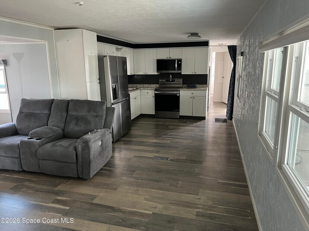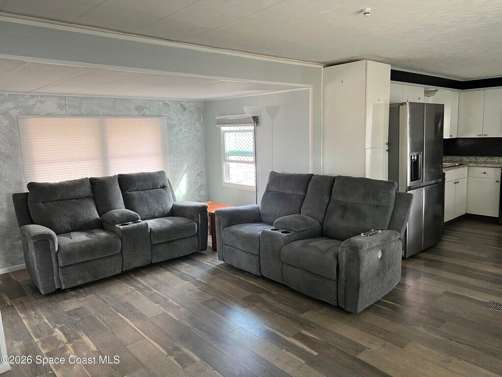 VERY WELL MAINTAINED 2 BEDROOM AND 2 BATHROOM HOME IN DESIRABLE AND GUARDED 55+ COMMUNITY IN NE PALM BAY LOCATED IN A NICE CUL-DE-SAC! HOME OFFERS NICE VINYL PLANK FLOORING THROUGHOUT,MODERN KITCHEN WITH STAINLESS APPLIANCES AND LOTS OF CABINETS AND GOOD LIGHTING THROUGHOUT. THE ENTRANCE (FRONT PORCH) HAS BEEN CONVERTED INTO A NICE SITTING AREA (FRONT ROOM) FOR ADDITIONAL LIVING SPACE. THERE IS A NICE STORGE SHED AND A VERY SPACIOUS SIDE PORCH. RENT INCLUDES LAWN MAINTENANCE,BASIC CABLE AND BASIC INTERNET PLUS THE USE OF ALL THE COMMUNITY CENTER FACILITIES WHICH OFFERS TWO POOLS,SHUFFLE BOARD AND MANY OTHER ACTIVITIES. MLS # 1069786