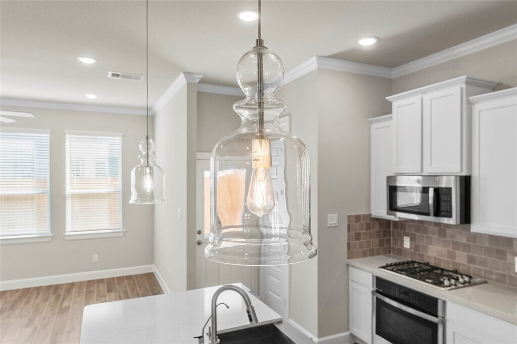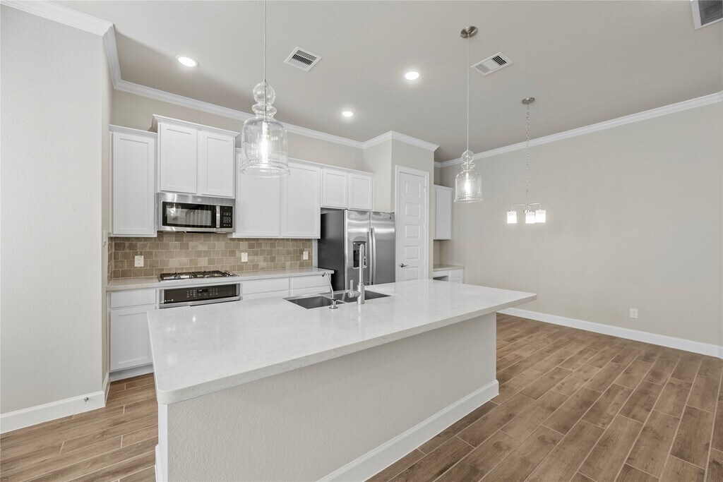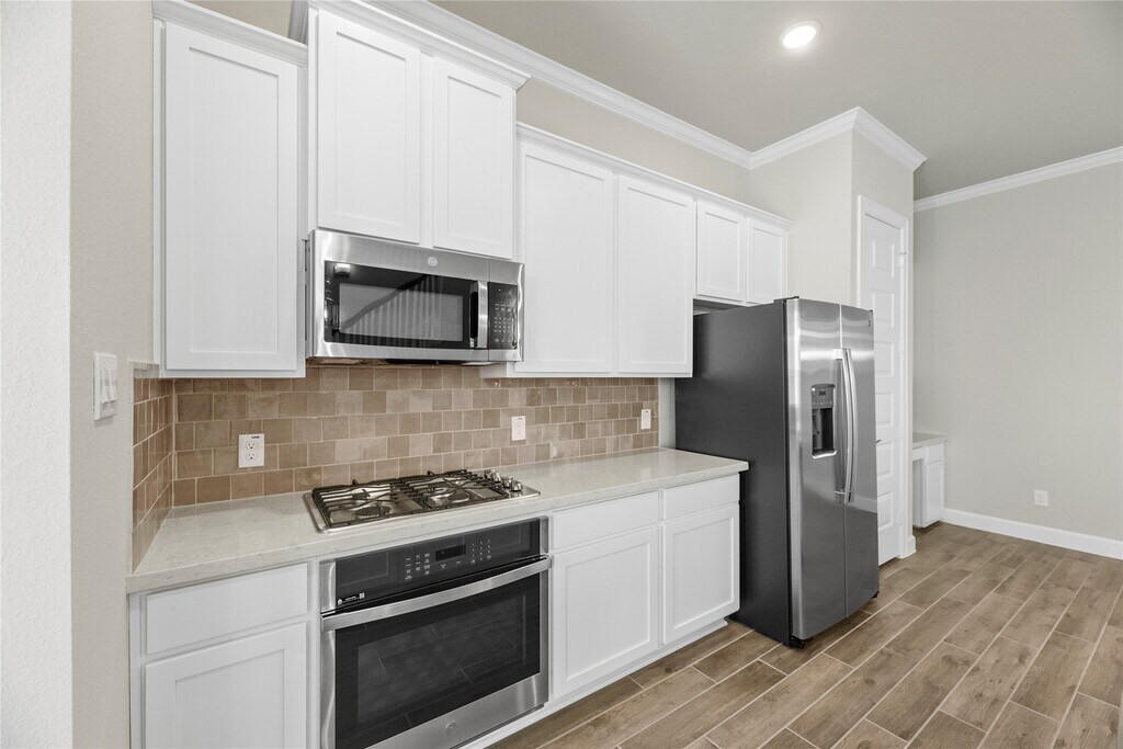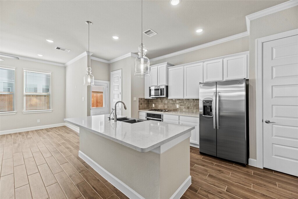 Be the first to live in this brand-new,never-lived-in home located in the gated Cloverdale community! This modern two-story features a bright,open layout with first-floor living and elegant finishes throughout. The kitchen boasts a gourmet gas cooktop,sleek stainless steel appliances,quartz countertops,maple cabinetry,and a large island overlooking the dining and family areas. Upstairs,the spacious primary suite includes a massive walk-in closet,dual sinks,soaking tub,and separate shower. Refrigerator,washer,and dryer are included for your convenience. Enjoy a covered patio,low-maintenance and private fenced backyard—perfect for relaxing or entertaining. Cloverdale offers the security of a gated entry,and a welcoming community feel with quick access to Hwy 288,Beltway 8 and the 610 Loop—just 15 minutes from the Texas Medical Center,Pearland Town Center,NRG Stadium and to Hobby Airport. Truly,a location that connects you everything that matters! MLS# 55513775