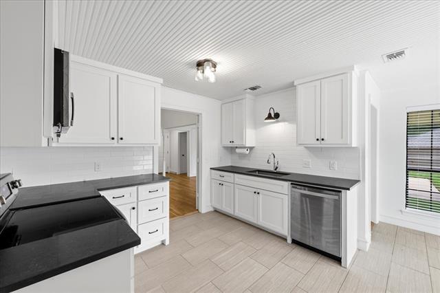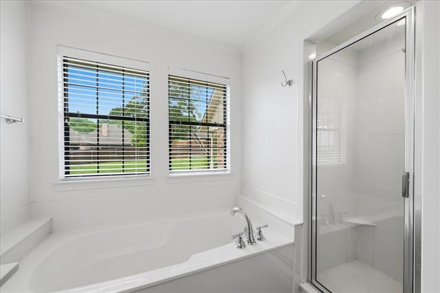 Welcome Home! Gorgeous 3 Bedroom, 2 Bath nestled in the Northshore of Rockwall, a Lake Ray Hubbard Community just east of Dallas. Home has tasteful updates with impressive hardwood floors throughout living complimented by picture frame molding, vaulted-beamed ceilings, floor to ceiling brick fireplace and much more! Kitchen features stunning quartz counters and breakfast nook with bay windows. Dining room open to living. Primary suite with walk-in closet, separate bath and shower. Split bedroom floor plan with secondary bedrooms separate from primary. Adorable curb appeal with large front porch, flower beds and refreshing mature trees. Large fully fenced backyard on corner lot with gated rear entry garage. Make an appointment to see this property or submit application. Rockwall ISD. Close proximity to boat ramp, shopping, dining, nightlife, parks, biking trails and much more! In person and 3D virtual tour available.