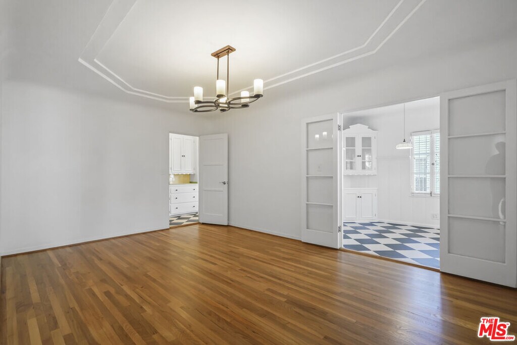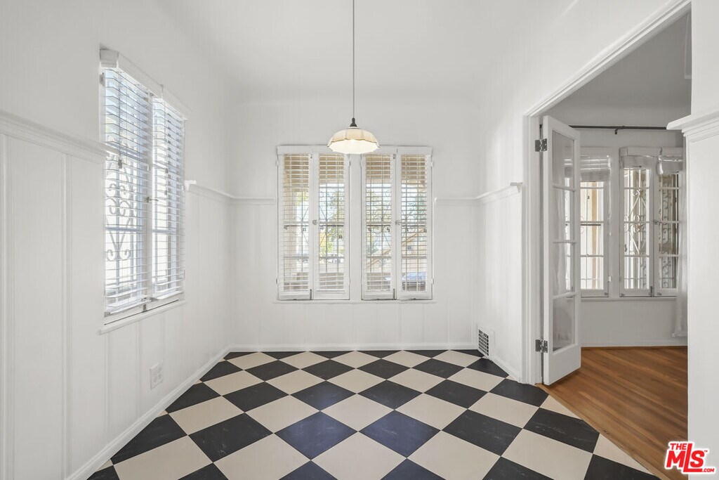 An exceptional Spanish masterpiece, this exquisitely updated duplex offers a rare opportunity to experience the elegance where timeless architectural character meets elevated modern living. Every detail has been thoughtfully curated to honor the home's original charm from the breathtaking moldings to the impeccably crafted built-ins. This expansive first-floor residence features 3 bedrooms and 2 baths across 2,034 sq. ft., showcasing refinished hardwood floors, abundant natural light through a stunning front window, and a sophisticated decorative fireplace that anchors the spacious step-down living room. The gourmet kitchen is equipped with stainless steel appliances and is complemented by a gorgeous breakfast room adorned with original cabinetry and a striking checkerboard floor that continues throughout the kitchen area. Bathed in natural light, the breakfast room beautifully highlights the home's vintage craftsmanship. Just off the kitchen, a dedicated serving area with original cabinets adds both charm and convenience, while a full-size washer and dryer are thoughtfully placed in a separate laundry room. Step outside to the private patio an entertainer's haven perfect for al fresco dining and grilling. Additional premium features include a private garage with two-car parking and an enviable location moment from Hancock Park and within easy reach of Downtown LA and the Westside. A home of this caliber is truly a rare find an impeccable blend of historic beauty and contemporary luxury. MLS# 25625393