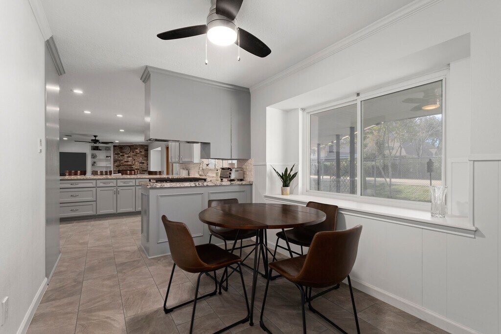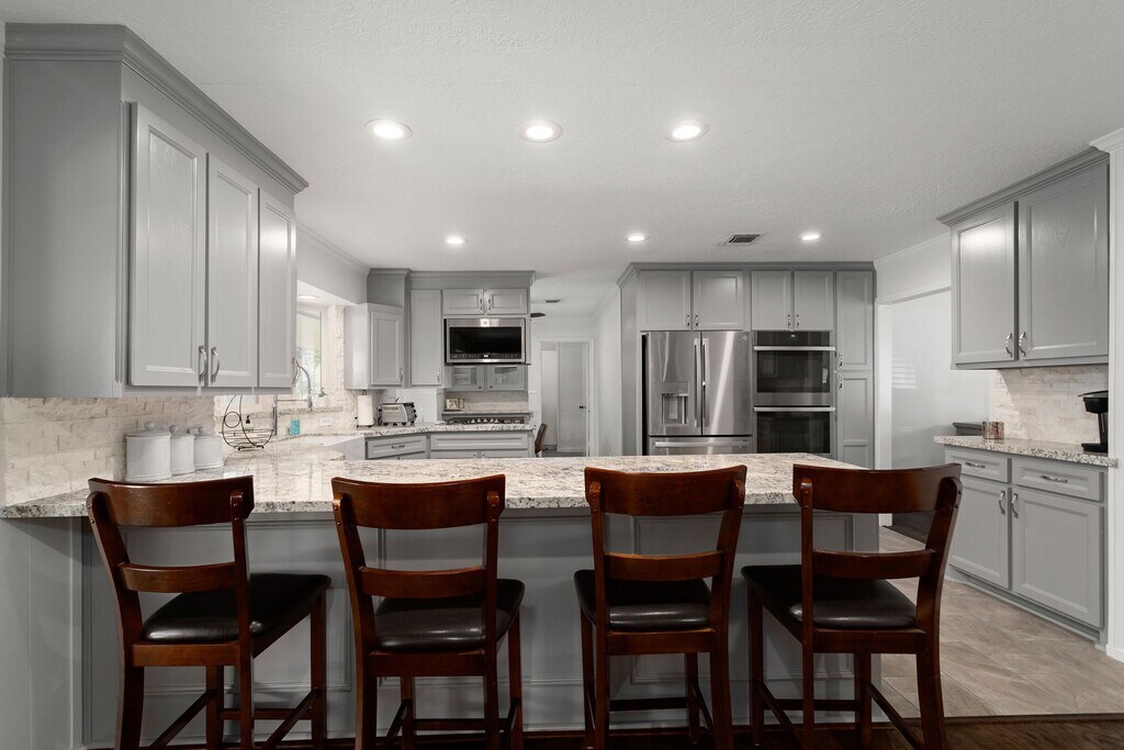 Barstools,Breakfast Room Table & Chairs all included. Recently remodeled with all new stainless steel "GE Profile" kitchen appliances including,French door refrigerator w/ ice and water,gas range,double oven,dishwasher and microwave. White Farm Sink w/ Disposal. Other updates include Floor to ceiling cabinets,granite countertops,stone backsplash and porcelain tile flooring,and epoxy flooring in Garage. Utility/mud room located inside home through garage entrance. Multiple hall storage closets. Backyard retreat with mature landscaping on generously-sized lot. Lovely neighborhood with community pool. Minutes from Memorial City Mall & City Center,Energy Corridor. Zoned to Stratford High School in top-rated SBISD! MLS# 76122475