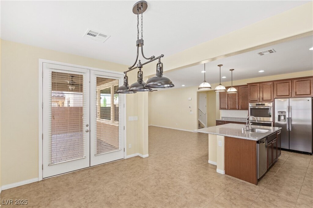 This 3-bedroom, 2.5-bath home features an open and inviting floor plan with stylish finishes throughout. The kitchen is a chef’s dream, showcasing granite countertops, a center island with pendant lighting, stainless steel appliances, and a spacious walk-in pantry. Tile flooring extends through the main living areas, offering both elegance and easy maintenance. Upstairs, you’ll find a versatile loft—perfect for a home office, media room, or play area—and all three bedrooms, including a relaxing primary suite with ample closet space. Step outside to your private backyard oasis! Enjoy a sparkling pool and spa, ideal for entertaining or unwinding after a long day. The covered patio and paver area provide plenty of space for outdoor dining and lounging. Conveniently located near shopping, dining, and freeway access, this home combines comfort, style, and resort-style outdoor living. Don’t miss this rare opportunity to lease a home with such a stunning backyard retreat!