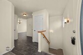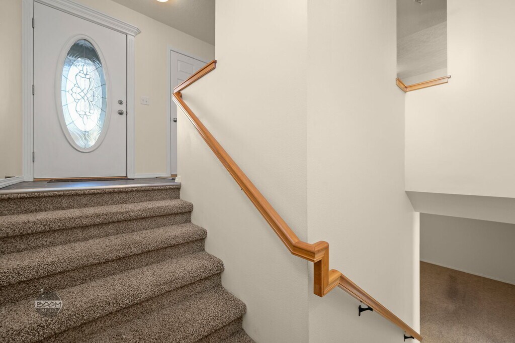 Lovely duplex in the heart of Eagle River! This well-maintained home features a fenced yard and an extra-large garage.The main level offers a spacious master bedroom with a private bath, along with an open dining area that opens to a balcony with incredible sunset and inlet views. The kitchen includes hickory cabinets, a pantry, and durable vinyl flooring, making it both functional and attractive