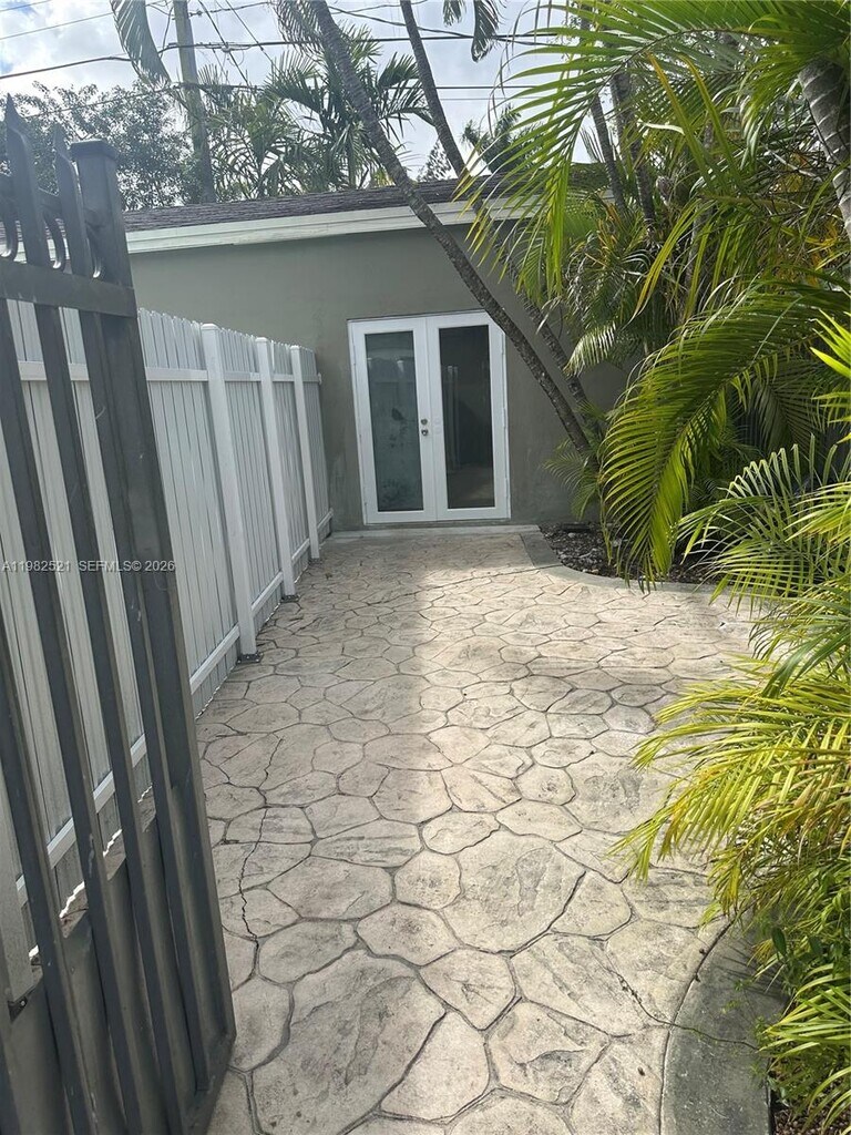 Charming private efficiency with separate gated entrance, front porch, and rear patio. Spacious open studio layout featuring tile floors, mini-split A/C, kitchenette with full refrigerator and microwave, and a full bathroom with tub. Freshly painted and renovated, ready for immediate move-in. Enjoy a quiet and private setting surrounded by tropical landscaping. Utilities included and large private storage room available. Conveniently located near shopping, transportation, and major roadways. MLS # A11982521