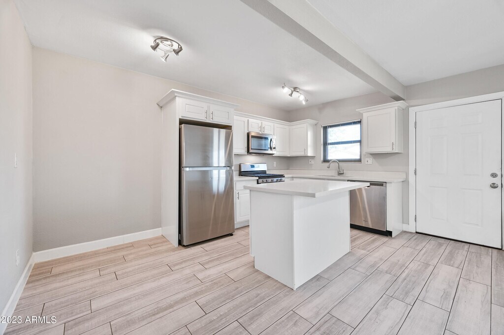 COMPLETELY REMODELED! Super cute 2 bed 1 bath duplex in North Tempe. New wood plank tile and new carpet. New Stainless steel appliances,gas range,quartz countertops,lighting fixtures,fans,windows,the works! Stackable washer and dryer. Nicely sized backyard with gravel and artificial grass. Close to Old Town Scottsdale,shopping and schools. This gem won't last long! $95/month water,sewer & trash fee. Tour today!