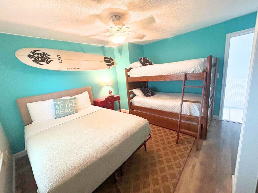 Welcome to your ocean-view escape! This 2-bedroom, 2-bathroom condo offers a spacious layout with ultra-comfy mattresses and bunk beds, perfect for families. Enjoy the fully equipped kitchen, smart TVs, fast Wi-Fi, and in-unit washer/dryer. With ice-cold A/C and two private bathrooms, comfort is guaranteed. Located close to Cocoa Beach attractions, shops, and waterfront dining, this condo provides private beach access for a truly relaxing experience. Experience ultimate beachside living in this 2-bedroom, 2-bathroom getaway with a stunning ocean view and direct private access to the beach. Whether you're sipping coffee on the balcony or listening to the waves from the living room, this home brings the beach to you. A fully equipped kitchen ensures effortless home-cooked meals, and the in-unit washer and dryer make long stays a breeze. Designed with comfort in mind, it features plush mattresses, refreshing A/C, and all the modern conveniences you need. After a day on the sand, unwind with your favorite streaming shows on smart TVs in both bedrooms and the living area. With free Wi-Fi and spacious accommodations, this is your home away from home. This property only allows parking for two cars. Located in charming Cocoa Beach on Florida’s Space Coast, this beachside home puts you in the heart of laid-back living and family-friendly fun. Enjoy sunrise strolls on the beach, dine at local seafood spots, and take in rocket launches from nearby Kennedy Space Center. Just a short drive to Orlando's world-famous theme parks and steps away from nature-rich Banana River, the area is perfect for beach lovers, adventurers, and everyone in between. Our digital locks let you arrive and check yourselves in, but we’re here if you need us. For urgent matters, call the number provided. To ensure a comfortable start to your stay, we provide an initial stock of essentials like paper towels, toilet paper, tissues, coffee pods, creamer, sugar, light cleaning supplies, garbage bags, sponges, dish soap, and dishwasher tabs. If you need additional supplies during your stay, please plan to replenish them as needed. Pets are not allowed. Quiet hours are between 21:00 and 8:00. [SI]