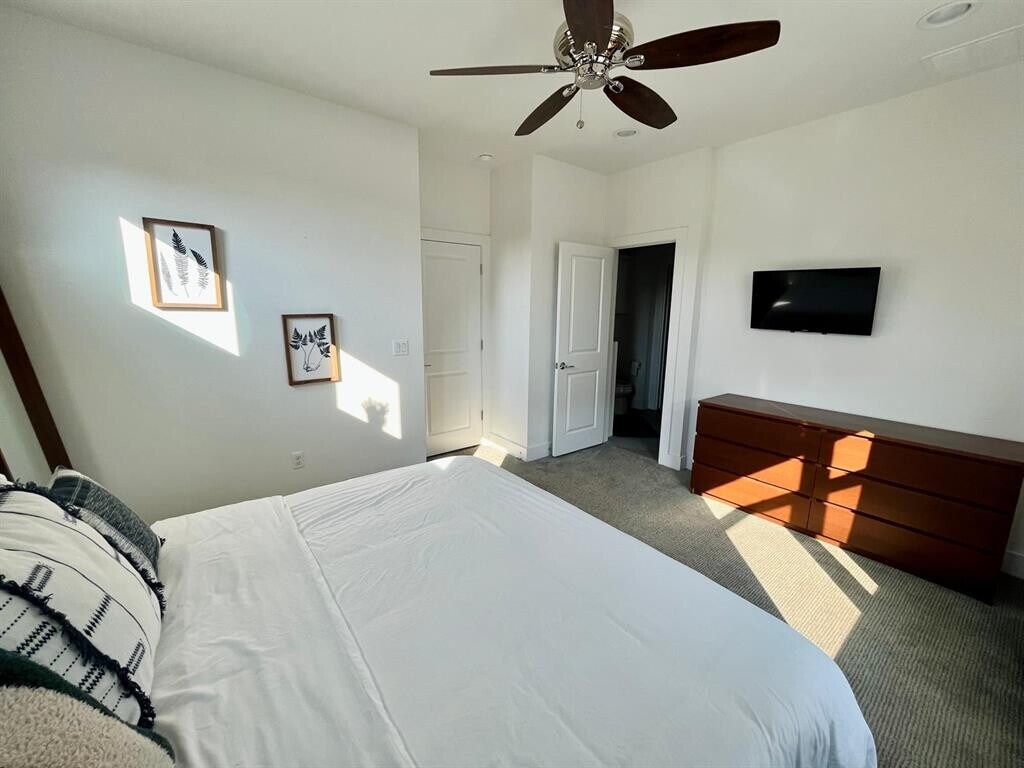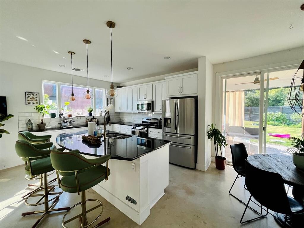Modern East Austin retreat blending privacy, style, and walkability. This 3BD/2.5BA home in Johnston Terrace offers the feel of a single-family home with the convenience of a six-unit community. Built in 2018, it features an open-concept layout with high ceilings, large windows, and abundant natural light. The kitchen includes quartz countertops, stainless steel appliances, a tile backsplash, and a large island that opens to a spacious living area. Step outside to a covered patio and wide fenced backyard—perfect for entertaining, gardening, or pets. Upstairs, the primary suite features an en-suite bath and walk-in closet, complemented by two additional bedrooms and a second full bath. Enjoy unbeatable access to East Austin favorites. Walk to Springdale Station, OMG Squee, and the Austin Bouldering Project via the new paved MoKan Trail. A new coffee shop and bar are being built right next door in a restored 1900s home. Bike to Govalle Park, Boggy Creek Farm, and East Austin Succulents, or connect to the scenic 10-mile Walnut Creek Trail just off Jain Lane. Energy-efficient construction, sprinkler system, and washer/dryer included. Minutes from East 6th, Downtown, and the airport—modern East Austin living with a true neighborhood feel.