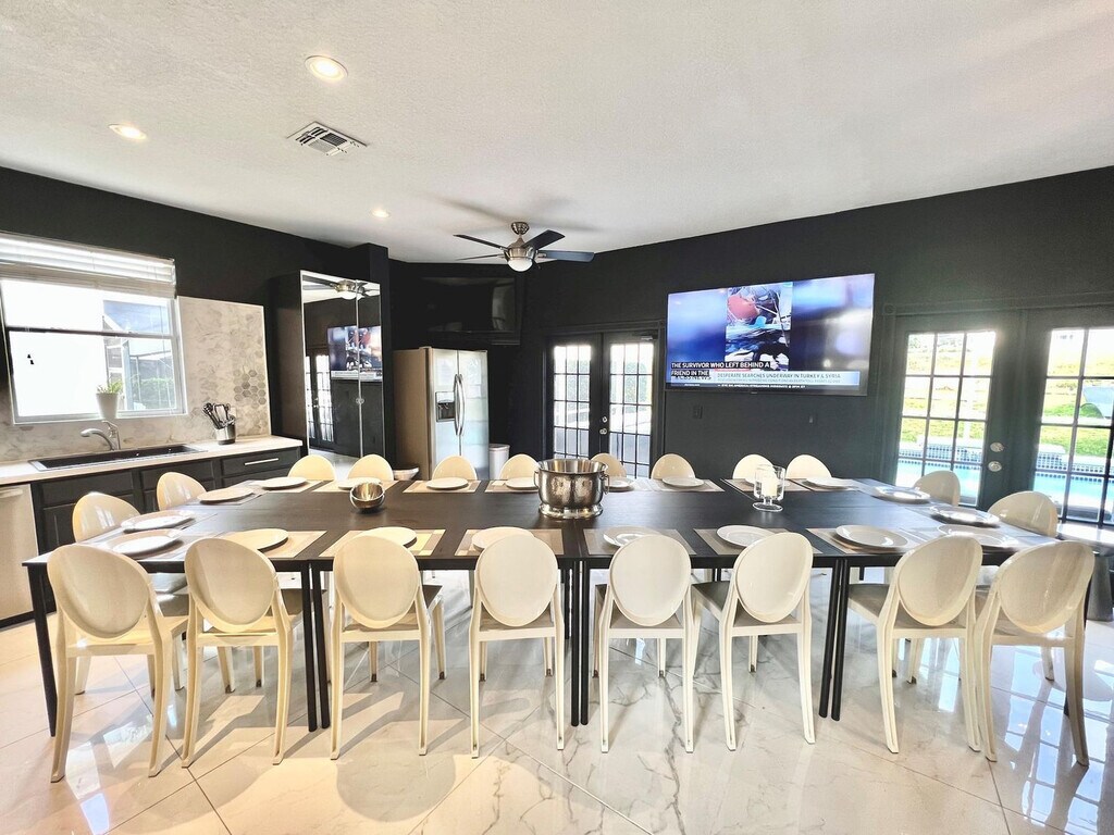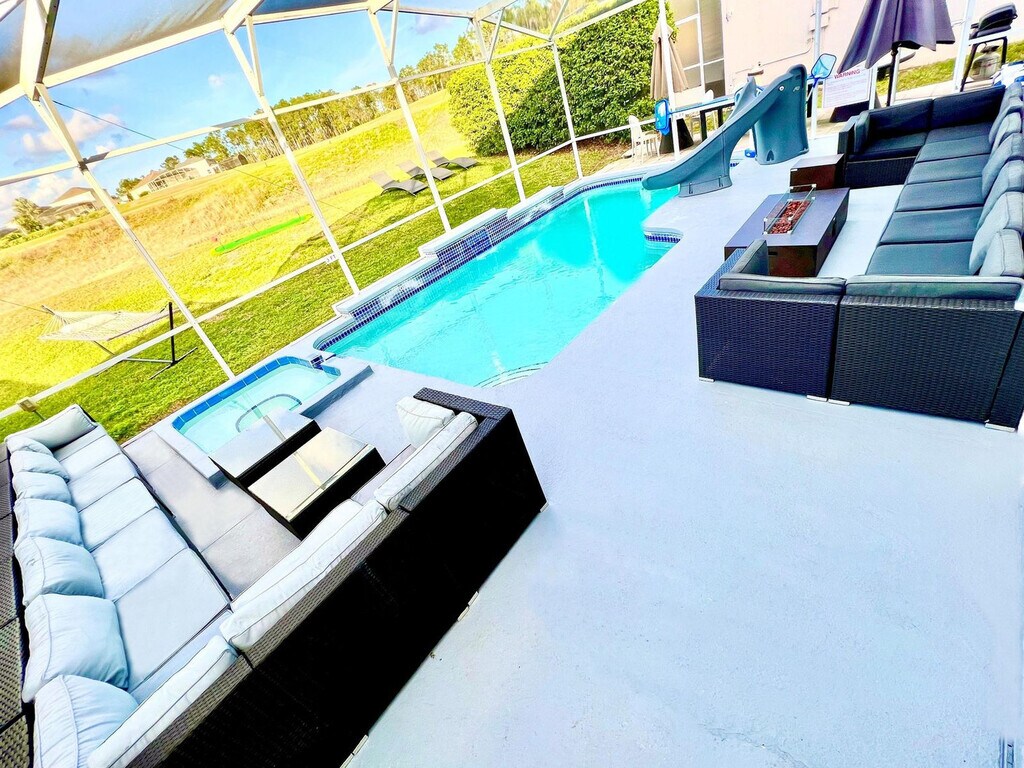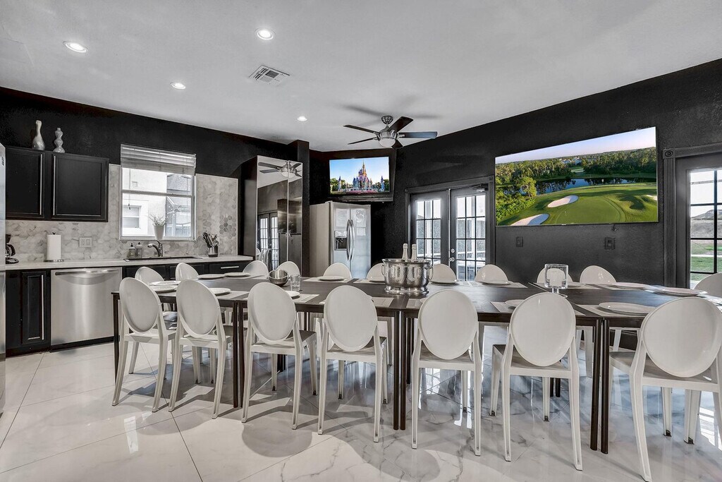The advertised rate of $22,568/month is the lowest available price, based on a 30 day(s) stay with a move-in date of May 3, 2026. Rates vary depending on the duration of stay, season, and other parameters. For exact pricing and additional pricing components, please visit our website and enter your desired move-in and move-out dates. The rate is applicable when billed upfront; it can be higher if billed in multiple payments. Feel at home in this luxurious 12-bedroom villa, boasting 5 bathrooms and a spacious 5,000sf layout (3,500sf of interior space and a sprawling 1,500sf pool patio). This villa features a fully equipped kitchen with top-of-the-line stainless steel appliances, including a Nespresso cappuccino and latte maker, and a soda stream. The living room is furnished with an oversized sofa group, coffee table, and a 75-inch Smart TV. For entertainment, there are 14 TVs throughout the home, an in-house Movie-Game and Golf Studio with a state-of-the-art short-through ceiling-mounted projector, and a fully equipped game room with a mini pool table and games. Enjoy the complimentary BBQ grill, Netflix and Amazon accounts, and a wide range of family games. The bathrooms come complete with high thread count bath linen. The outdoor area features a pool, spa, lounge chairs, an outdoor dining table, and a lovely outdoor sofa sitting area overlooking the golf course. An optional Golf Membership is available, and a Golf Simulator & Launch Monitor used by PGA pros is available upon request. Free car parking is available for up to three vans, with additional guest parking on the road. Located in the Highlands Reserve Golf Resort in Davenport, this villa offers lavish views of the golf course and is about 9 miles from the Disney World Animal Kingdom area. It is also conveniently located within walking distance to the tennis court, community Olympic size swimming pool, playground, and pro shop. You'll be surrounded by hundreds of restaurants, bars, and outlet stores, and the Publix grocery store is less than a mile away. There is a water park H2O only about 7.5 miles from the home and an Epperson Crystal Lagoon about 50 miles away. No third-party reservations, non-registered guests, and no local visitors are allowed without prior approval. No music outside that can be heard more than 60 feet away is allowed and completely hushed after 10 p.m. on weekdays and 11 p.m. on weekends. Max 3 vans are allowed per home (2 in driveway, one on the road, and no parking on grass). Pets and smoking are not allowed. A laptop, computer, and desk are available. [SI]