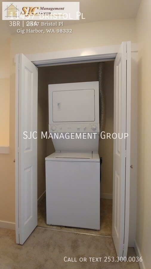 Well-maintained 3-bedroom, 2-bath townhome in the Harbor Crossing neighborhood of Gig Harbor. Unbeatable location—just a short walk or drive to shopping, restaurants, and medical centers. The home features cathedral ceilings in the main floor living area with newer LVP flooring, and a cozy gas fireplace for year-round comfort. The kitchen area is also open, allowing you to utilize the space how it works best for you! Upstairs find the primary bedroom with two closets and ensuite bathroom. Another two bedrooms, full bathroom, and a provided stackable washer & dryer complete the rest of the upstairs. A detached 1 car garage is included. Just outside of the kitchen is a cozy private backyard space. Landscaping is provided by the HOA. Schedule a showing today! Pets [breed and size restrictions may apply] are allowed pet screening required, approved pets will incur a pet mitigation fee (between $150 and $350) at move-in + a monthly pet fee of $35-$75, max two pets. For more information or to set up a viewing please contact the leasing team at SJC Management Group. Please note showings can be scheduled online at any time. After hours or weekends, showings must be scheduled and confirmed by our staff before the end of the business day. Our business hours are Monday-Friday from 9 am to 5 pm. We are closed for all major holidays. ADDITIONAL TERMS: Required $85 at move in and additional $35 per month Resident Benefit Package offers an array of advantages. With this package, you'll enjoy convenient benefits such as regular delivery of furnace filters and additional perks designed to enhance your renting experience. UTILITIES: Not included DEPOSIT REQUIRED: $2700