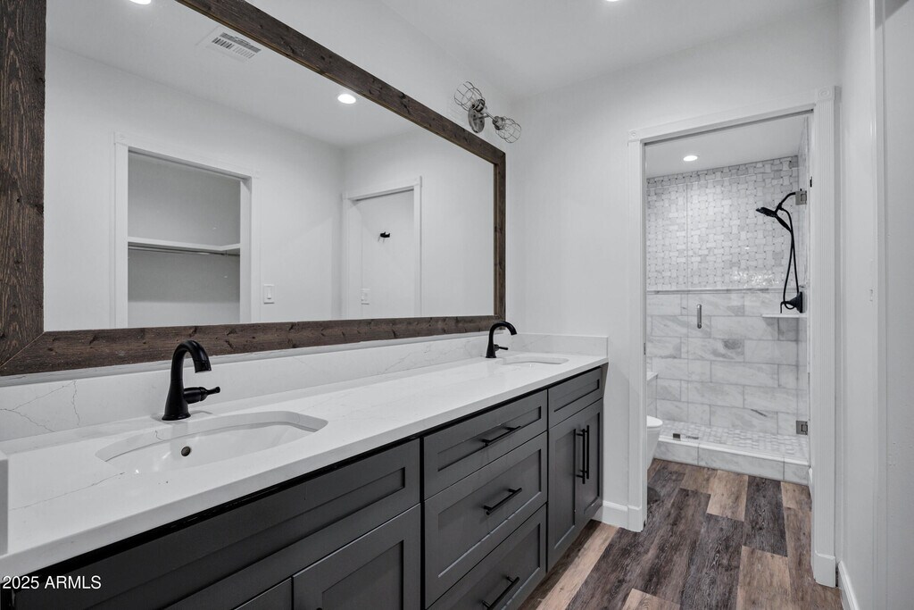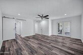 JAW-DROPPING REMODEL. Nestled in the Orange Tree neighborhood and upgraded from top to bottom,this home will knock your socks off. An expansive gated courtyard welcomes you your new 3 bed 2 bath townhome. Breathtaking updates include luxury vinyl plank flooring,quartz counters and sliding barn doors. Natural sunlight through clerestory windows brightens the family room with stunning vaulted ceiling and fireplace. Completely upgraded,the chef's kitchen has a stainless appliance package and shiplap accent wall. Two primary suites,one up and one down. Each with a walk-in closet and designer bath. Spectacular views from the deck. Paved back patio perfect for hosting. Epoxy garage. Community pool.
