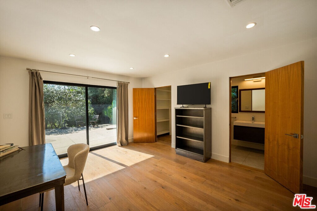 Perched on a quiet and private street in the tranquil Studio City Hills, this light filled beautifully renovated single-level home blends modern sophistication with relaxed California living. The open-concept design showcases wide-plank hardwood floors, Fleetwood doors, and seamless indoor-outdoor flow. The chef's kitchen features Thermador and Miele appliances, and a wine fridge. The primary suite offers garden views and spa-like finishes. Enjoy the outdoors with a lap pool and spa, pizza oven, and fire pit ideal for alfresco gatherings under the stars. Additional highlights include an EV charger and an infrared sauna for ultimate relaxation. Located within the Carpenter School District and just moments from Ventura Boulevard's premier dining and shopping, this home offers the perfect blend of luxury, comfort, convenience, and privacy. Available furnished for immediate lease. MLS# 25611219