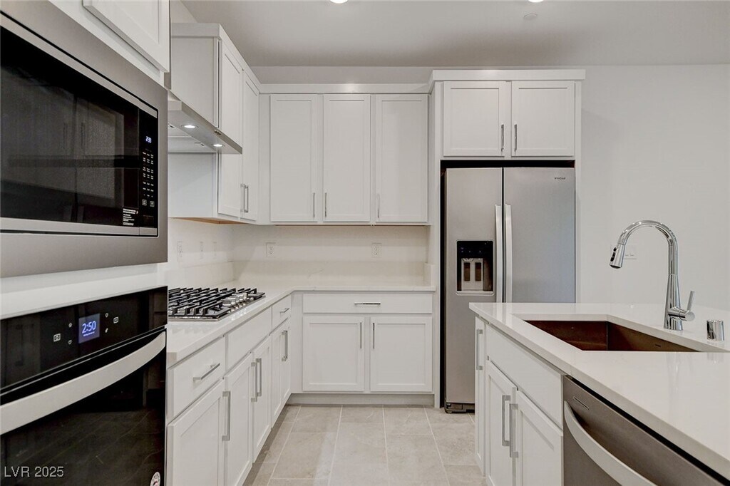 Enjoy a gorgeous new offering located in Summerlin's Monument at Reverence, a Pulte community. This Cornwall floorplan features a rooftop deck offering stunning city and mountain views. A welcoming open floorplan with great room and open kitchen featuring stainless steel appliances, stone countertops and a kitchen island. This home has a tiled downstairs with carpeting upstairs. Three bedrooms two and half baths. Two car attached garage and covered front patio with gated entry. Don't miss this opportunity to make this new gated community your home.