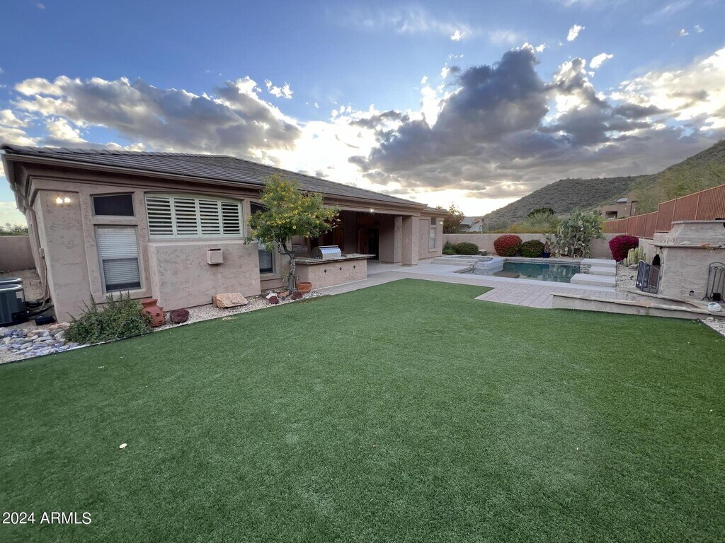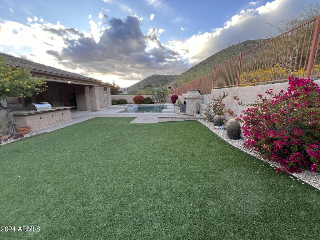Gorgeous Sunset City & Mountain Views on an Acre hillside lot on the NAOS,only 1 neighbor! Lots of open area around you and on a cul-de-sac lot in exclusive gated community,Ancala West! Slab granite & maple kitchen cabinetry with updated appliances,full Viking outdoor chef's kitchen w/ dual burner stove top plus gas grill,and refrigerator and sink to enjoy while laying by the heated pool and spa. Outdoor and indoor fireplaces! Artificial grass. Low maintenance and Low-E windows,reverse osmosis,water softener,and central vacuum. New faucets and sinks! Master has 3 closets and direct access to the patio! Surround sound in family room & speakers throughout home and patio. Renters Dream! Too many features to mention! Come check out the views.