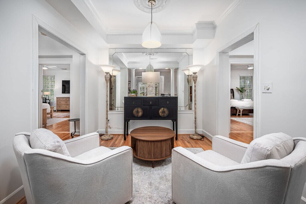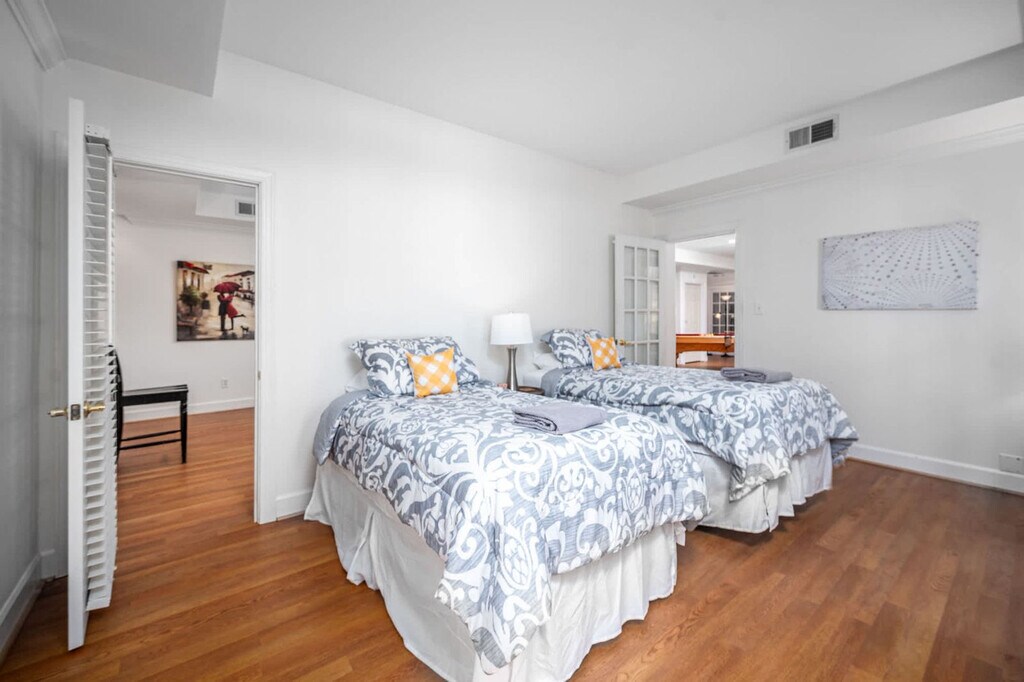 Welcome to The Clubhouse Hideaway, a spacious 6-bedroom retreat in the exclusive Governors Club of Chapel Hill. Overlooking the Jack Nicklaus Signature Golf Course, this stunning getaway offers two beautifully designed units, each with its own private entrance, luxurious amenities, and breathtaking views. Ideal for large groups, families, golf getaways, and special occasions, this home provides plenty of space while ensuring privacy and comfort for all guests. The Upper Unit, known as The Fairway, features 3 bedrooms and 2.5 bathrooms. The primary suite includes a king bed with a private ensuite bath. The king and queen bedrooms are connected by a Jack and Jill bathroom, featuring two separate toilets, a shower with a bench, and a spa tub. Enjoy a spacious living area with stunning golf course views and a fully stocked kitchen and dining area. The Lower Unit, The Greenview, offers 3 bedrooms and 3 bathrooms. It includes two suites, one king and one queen, each with private ensuite bathrooms and kitchenette nooks. A twin bedroom provides a cozy space for additional guests. This unit also boasts an entertainment space with a pool table, a spacious living area, and a full kitchen. Nestled in the scenic rolling hills of Chapel Hill, Governors Club is an exclusive gated community offering luxury, tranquility, and Southern charm. Guests will enjoy beautifully landscaped streets and proximity to top dining, shopping, and UNC-Chapel Hill. Whether you're in town for a golf retreat, business trip, UNC or Duke event, medical stay, wedding, or simply a relaxing getaway, this home offers a peaceful and convenient home base. It's just 15 minutes to UNC-Chapel Hill, 20 minutes to Research Triangle Park and Durham, and 30 minutes to Raleigh-Durham International Airport (RDU), with close access to top-rated restaurants, shopping, and cultural attractions. The property is professionally managed to ensure a seamless guest experience from start to finish. Guests will have access to 24/7 guest messaging support for questions, recommendations, or troubleshooting, and a dedicated emergency line for urgent issues that may arise during your stay. While the team won’t be on-site, they are always just a message away and happy to assist throughout your visit. Security is enhanced with outside areas monitored by 24/7 audio and video recording for guest safety. [SI]
